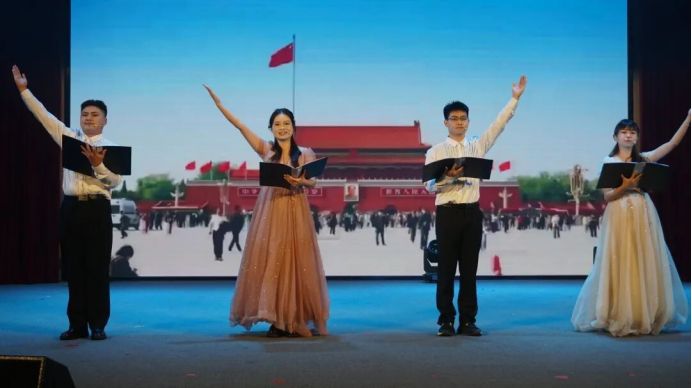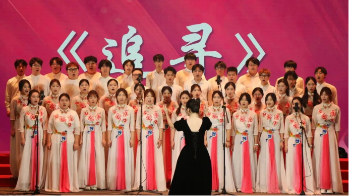 歌曲《向往》宛如一首激昂澎湃的时代赞歌,它以中国梦和两个百年奋斗目标为核心主题精心创作而成,满溢着对美好未来的炽热向往;人文学院合唱团则以嘹亮且深情的歌声,诉说着歌曲《追寻》中对红色初心的坚守,对崇高理想的执着追求。