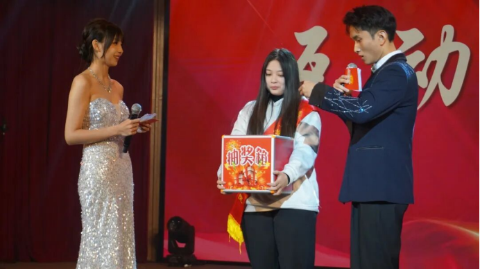 迎新晚会还设置了中场互动抽奖环节,同学们进场时抽取的号码牌成了此刻的幸运钥匙。三轮抽奖将随机的温暖稳稳传递到在场的每一个人心中,愿“研途顺遂”的祝福常伴大家左右。
