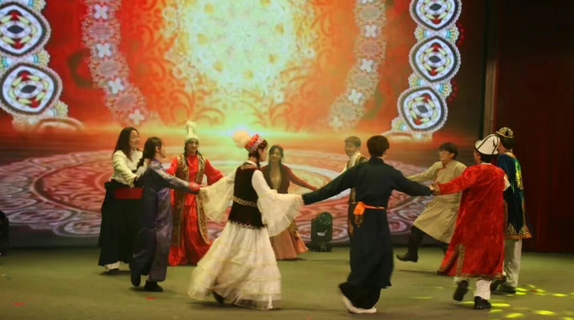 歌曲《再见深海》以细腻动人的旋律传递成长的坚韧力量,扬起信念的风帆,无畏地驶向远方。舞蹈串烧《舞动青春》跳跃青春的节拍,感受着那份独属于青春的张扬与美好;钢琴独奏《远方的天空》以黑白琴键为媒,带领观众奔赴一场关于远方与梦想的听觉之旅,每一个乐句都绽放出诗意。一曲《于是》温柔吟唱。将科研人探索途中的思索与韧性化作歌声,娓娓道来。《太极琴侠》以二胡与竹笛二重奏的传统民乐形式演绎经典曲目,如同一幅流动的山水画卷,在悠扬的旋律中领略到中华传统文化的博大精深。特邀嘉宾刘敏榕工作室带来的舞蹈《ATENOXKA》(太阳),以鲜明的民族特色和欢快的舞步活跃了全场氛围,让大家真切感受到了“中华民族一家亲”的团结力量。