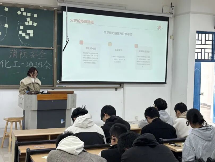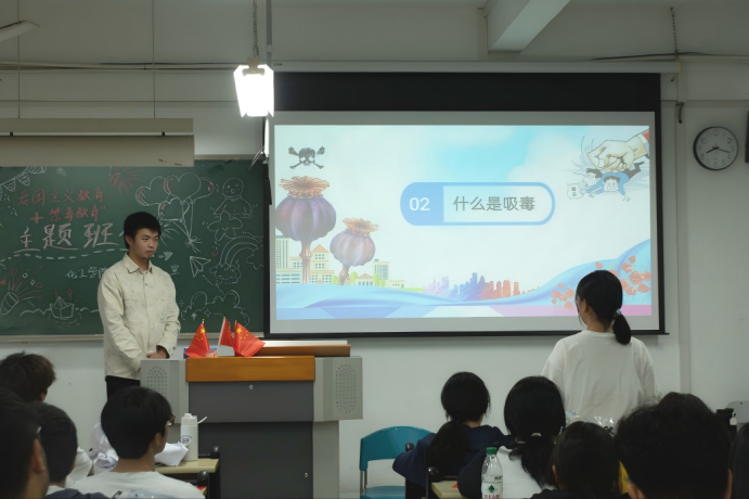 学院依托主题班会平台,充分发挥朋辈引领的示范作用。在常规校纪校规教育基础上,2025级各班在高年级优秀学生骨干的组织带动下,围绕国家安全、爱国主义教育、禁毒宣传和交通与消防安全等主题,开展了一系列案例分析与互动交流相结合的专题班会。班会内容涵盖从社会责任感塑造到个人行为规范的多重维度,构建起一个多层次、沉浸式的“教育反应场”。在这一朋辈共育的场景中,规章制度通过身边榜样的生动讲述,促使新生将外在约束转化为内在自觉,推动认知向实践有效转化,切实筑牢其成长发展的思想与安全根基。