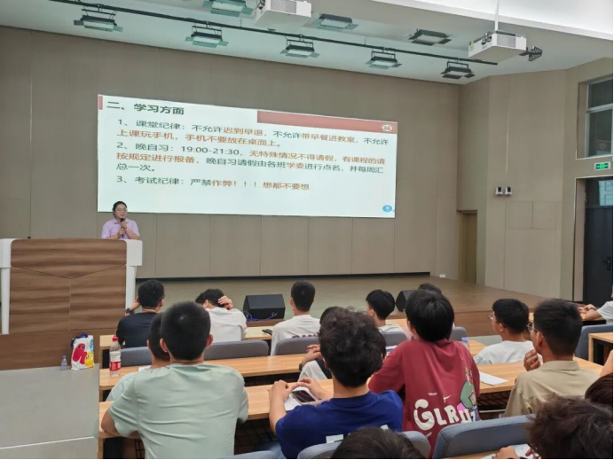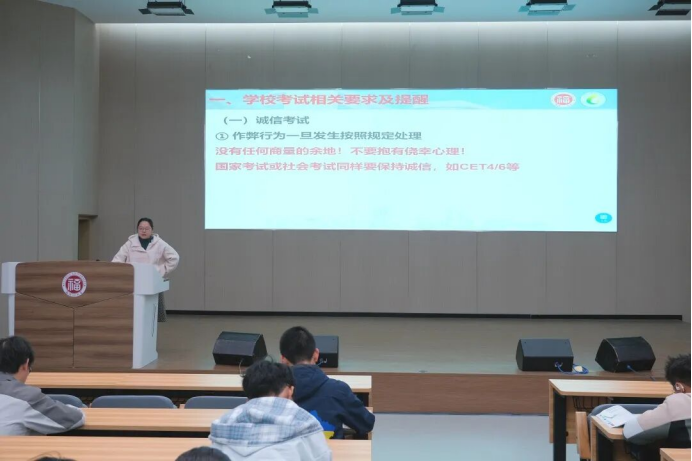 2025级本科生辅导员陈桂梅从学风建设、宿舍安全、课堂纪律等方面解读日常管理规定。强调“小事守规范,大事有担当”,指出细微之处见修养、集体秩序需共护,引导新生自觉遵守规则,在自律中培育良好习惯。结合当前校园实际,重点开展了诚信考试教育与防诈宣传专题讲解。通过真实案例分析与政策解读,辅导员深入剖析学术不端与网络诈骗的危害,强化新生的诚信意识与风险防范能力,提醒大家筑牢思想“防火墙”,保护个人与集体利益。立足“规”与“行”,系统构建日常行为引导体系,助力新生在自律中凝聚班级向心力,在规范中稳步成长。