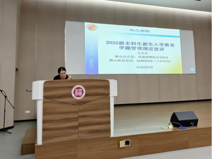 学院教学办吴东东老师聚焦学籍管理规定开展专项讲解,围绕学分修读、课程考核、学业预警、学籍变动等关键环节,详解制度要求与操作流程。结合化工专业人才培养特点,吴老师强调“学术诚信是立身之本,制度遵守是学业之基”,鼓励新生树立明确学习目标,规范学术行为,以严谨态度投身专业学习,为未来科研创新之路积蓄力量。