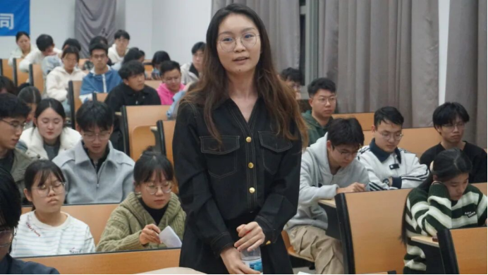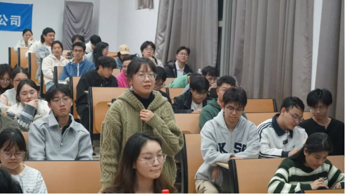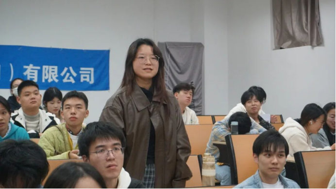 在互动环节,同学们积极提问,就“化工专业在半导体产线中的岗位方向”“企业实习机会获取”“半导体行业人才成长路径”等话题与欧阳副总监展开交流。他结合行业实际与用人需求,一一给予解答,并特别强调,除了专业能力,个人的性格特质、情绪管理以及综合素养同样重要,鼓励同学们在夯实专业基础的同时,注重全面发展。