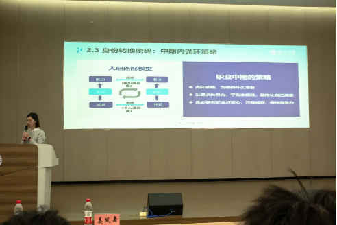 讲座伊始,姜凤舞经理便直击现实,剖析了企业筛选人才的三层逻辑:院校背景、专业匹配与个人能力。她指出,在“简历淹没”的时代,每一步都在书写未来的简历。她引导同学们解码“BANI时代”特征,告别“内卷-躺平”的循环困境,完成从被动“学生”到主动“职业生涯管理者”的根本性思维跃迁。她强调,规划并非空想,而是普通人应对不确定性最可靠的“生存智慧”。