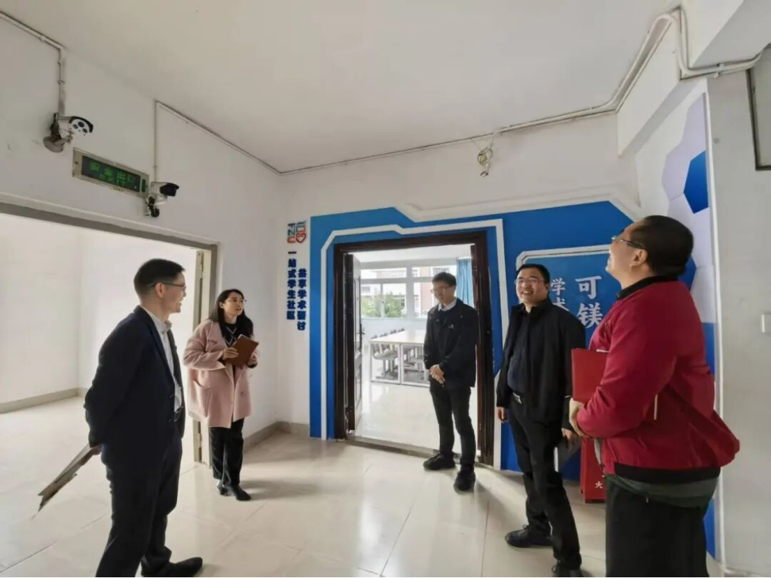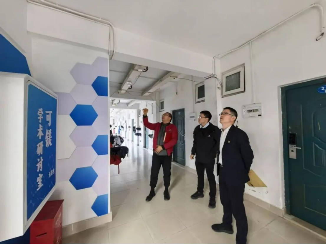 会后,邱启荣主任一行前往博学苑A区27号楼“可镁温暖社区”走访调研,实地察看共享空间、生活设施及文化建设情况。针对3层共享空间存在的网络线路问题,现场研究并提出了切实可行的解决方案。