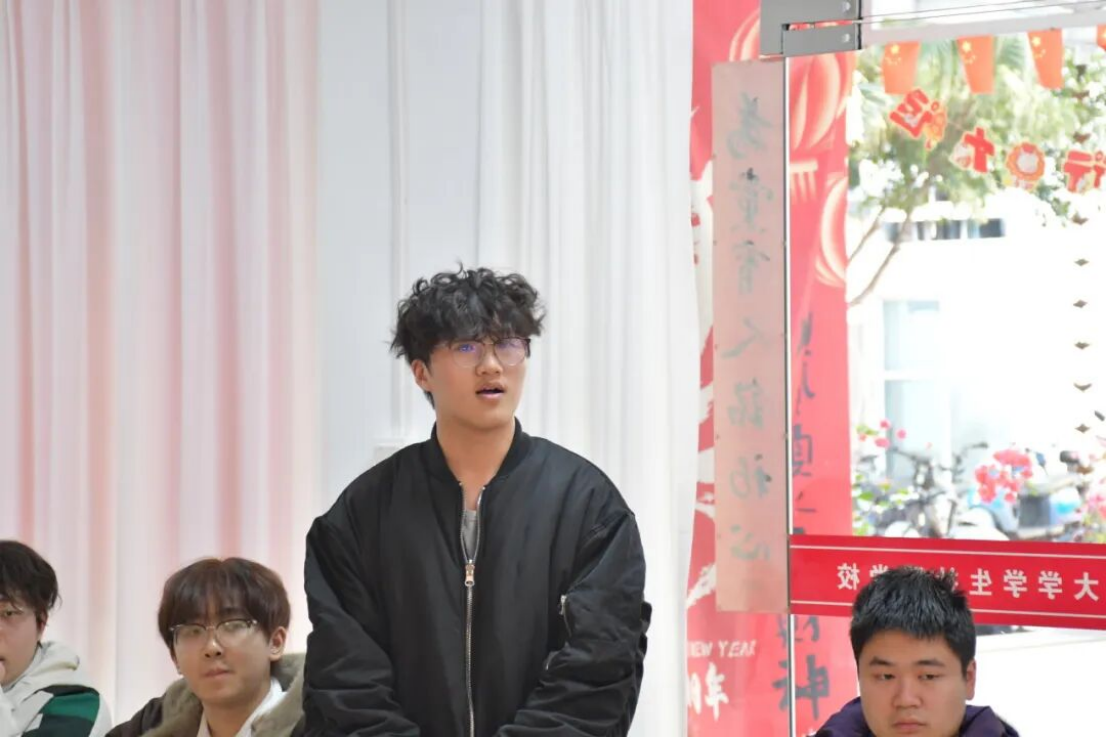 会上,邱启荣主任围绕党的二十届四中全会精神给同学们带来了一堂生动的微党课,系统梳理了“十四五”期间学校在党的建设、学科发展、人才培养、科学研究等方面取得的成果,并介绍了学校“十五五”时期“奋勇争先,续写建设世界一流的东南强校新篇章”的重点任务。他鼓励同学们保持奋发向上的姿态,积极为学校未来发展贡献力量。