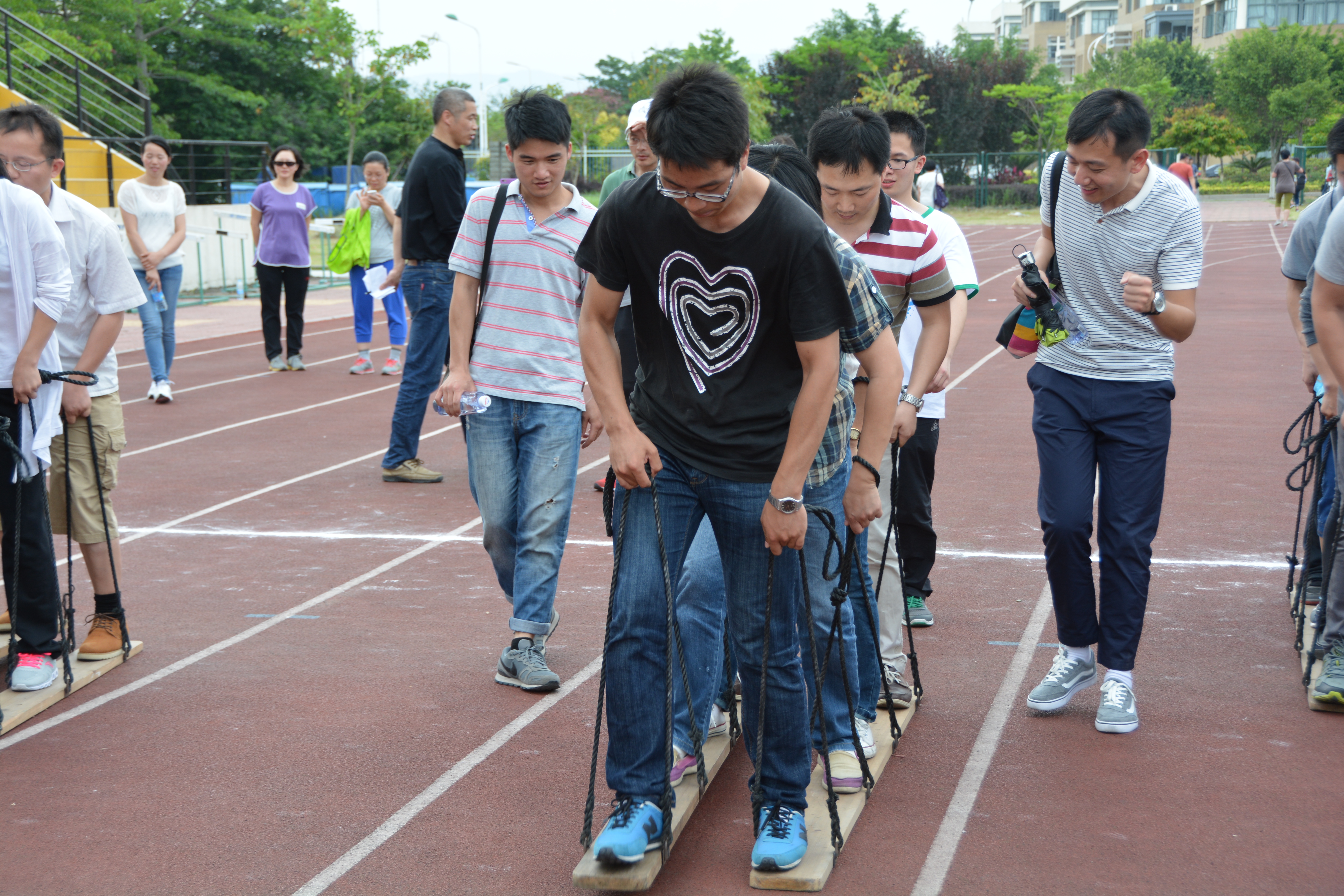 活动中,老师们沿着健步走路线,在感受福大文化的同时活跃身心。健步走后,部分教职工以工会小组为单位,分别承担跳绳比赛、众星捧月、提绳踏板、车轮滚滚等趣味运动会项目,取得了良好的成绩。