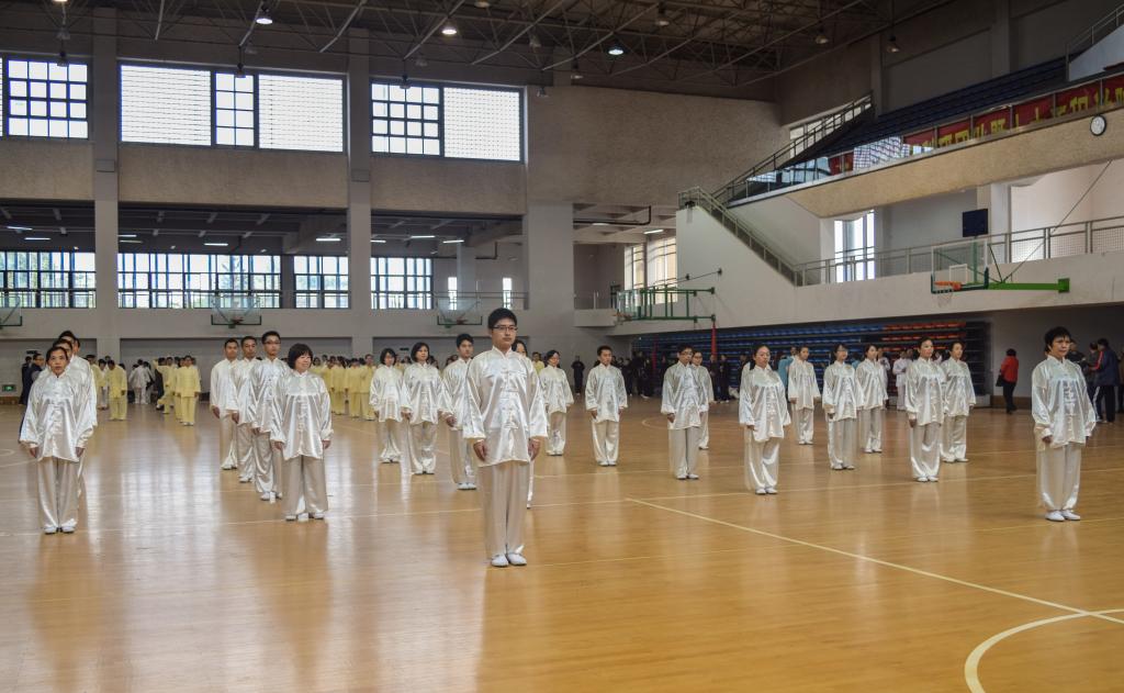 举办的首届“教职工太极拳大赛”在风雨操场体育馆内举行。来自各个学院和机关部门的21支队伍参加了此次的比赛。