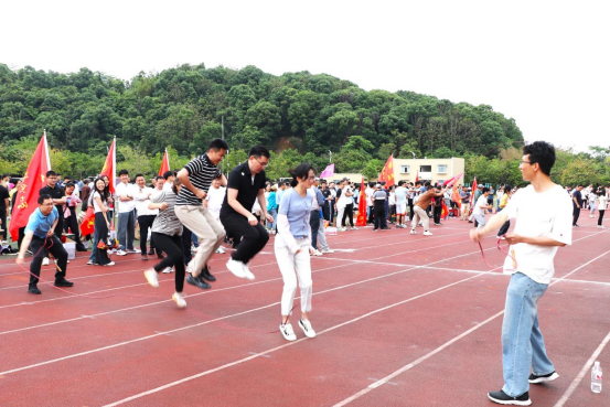 趣味运动会所设项目趣味性强又不失挑战,“集体跳绳”不仅考验身体素质又考验团队协作能力,学院教职工团结一心,合作默契。