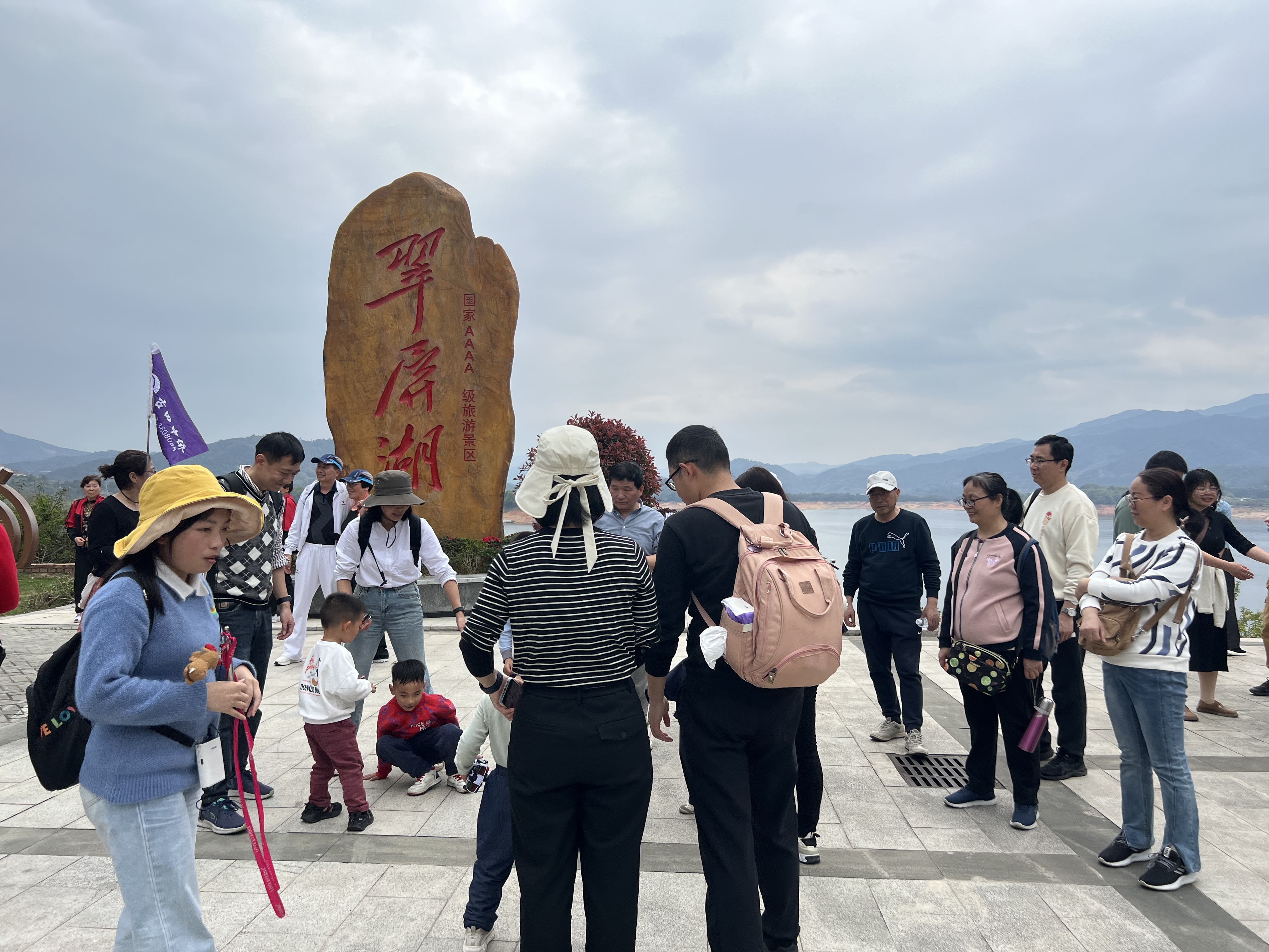 八闽第一大湖——翠屏湖,湖水的颜色非常奇妙,不是绿,不是蓝,又似绿似蓝,恰似白居易的江南好中的春来江水绿如蓝。水中浮游生物很少,湖水才清澈如镜,又由于水很深,看上去就像翡翠般的绿如蓝了。老师们漫步湖边,呼吸新鲜空气,欣赏生态美景,倍感身心愉悦,展现了一幅“人与生态和谐共生”的美好画面。