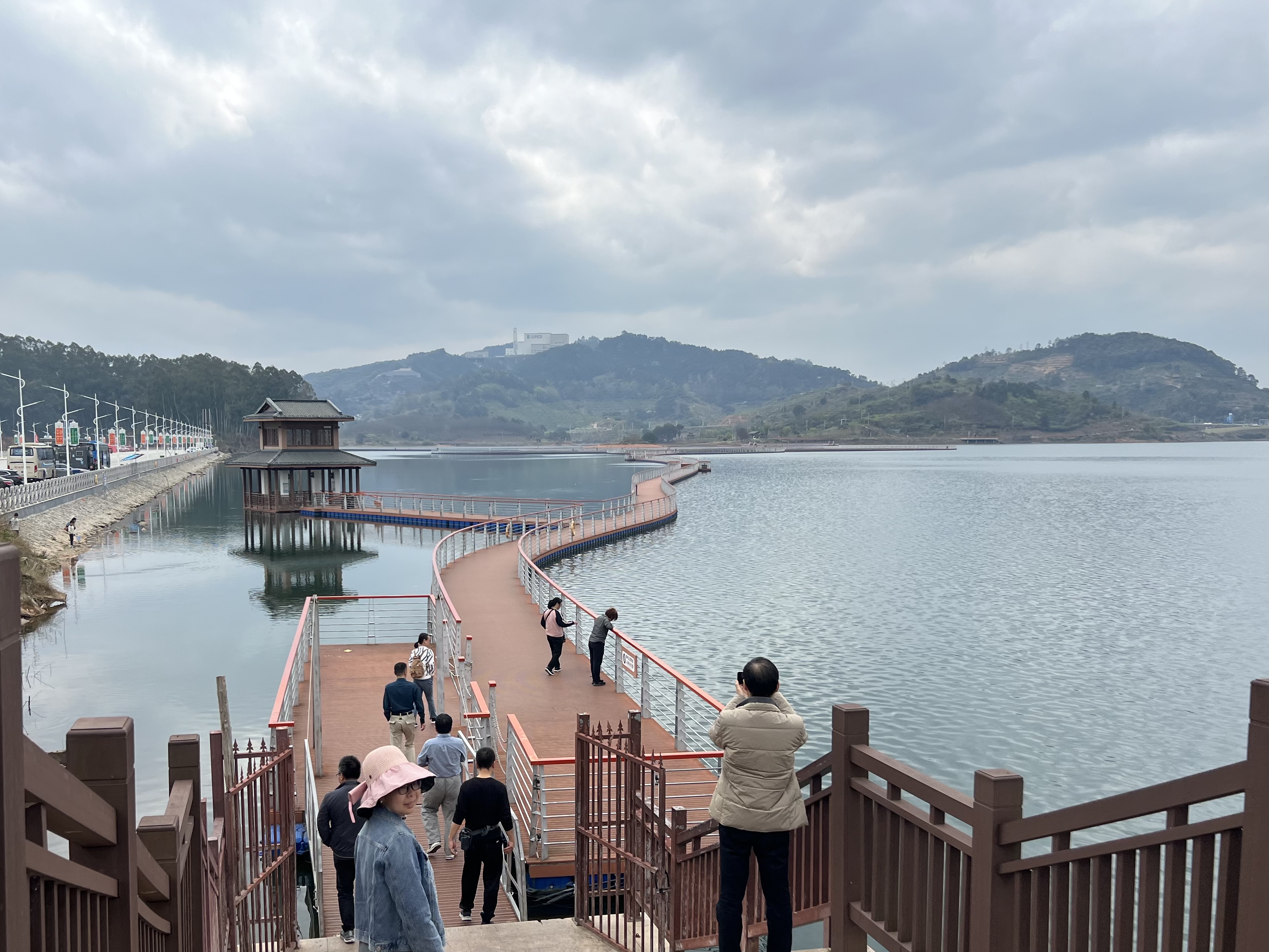 随后,教职工们乘车前往翠屏湖,漫步七彩水上漫道。如诗如画的水上漫道景观生动展现了古田“宜居宜游”的生活环境。老师们一路欢声笑语,惬意非凡。