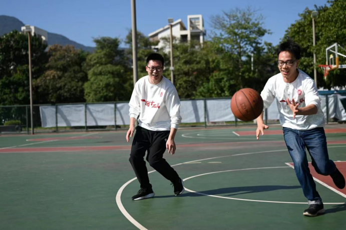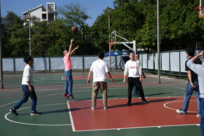 校友们在学校操场打球,重燃青春!