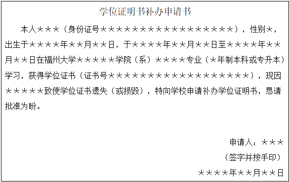 2.补办申请书参考格式如下: