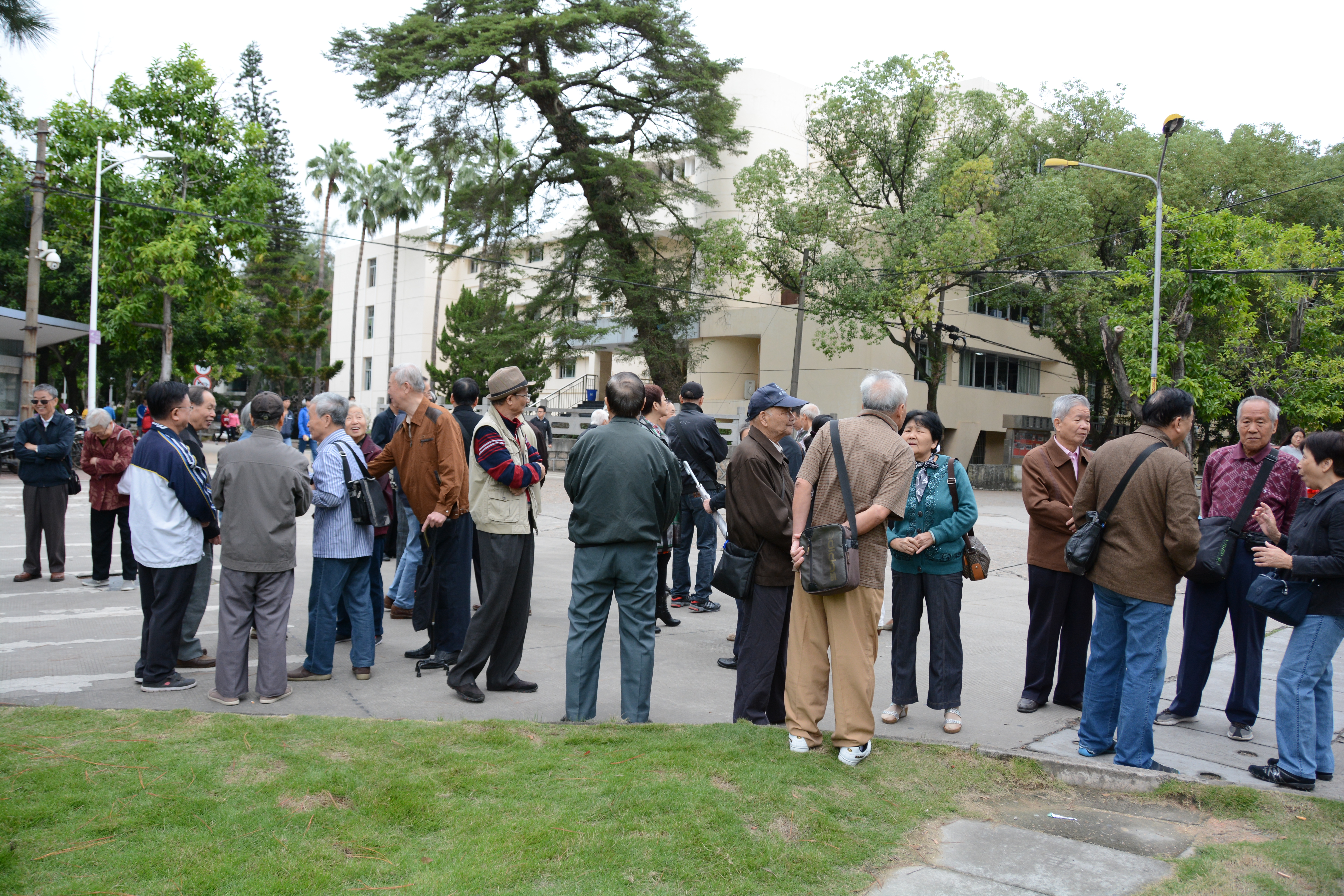 老同志们在集合处热烈交谈