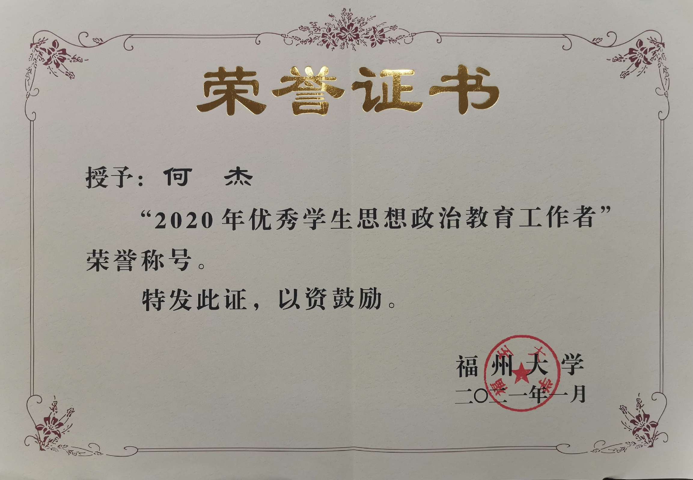辅导员何杰同志获评 苏畅