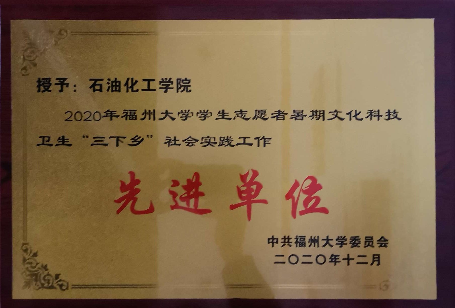 获福州大学暑期“三下乡”社会实践先进单位