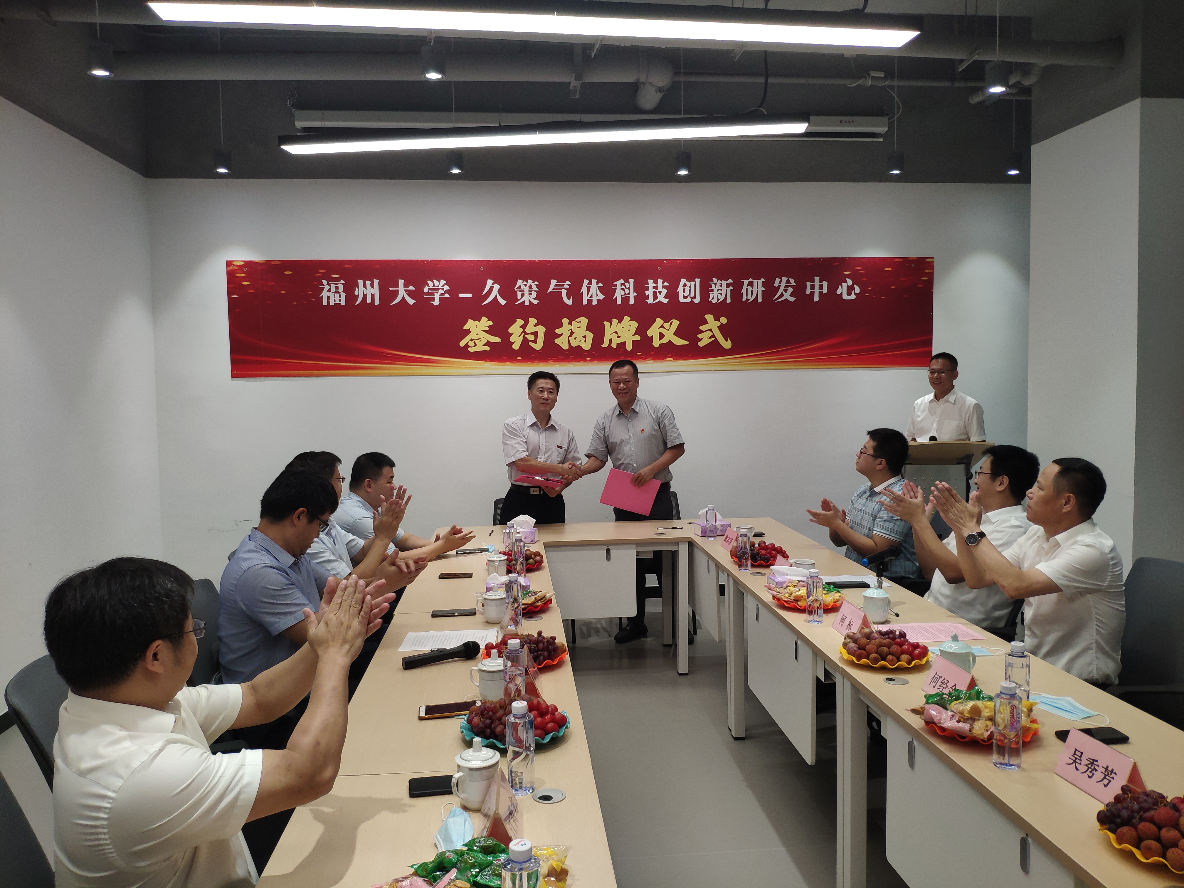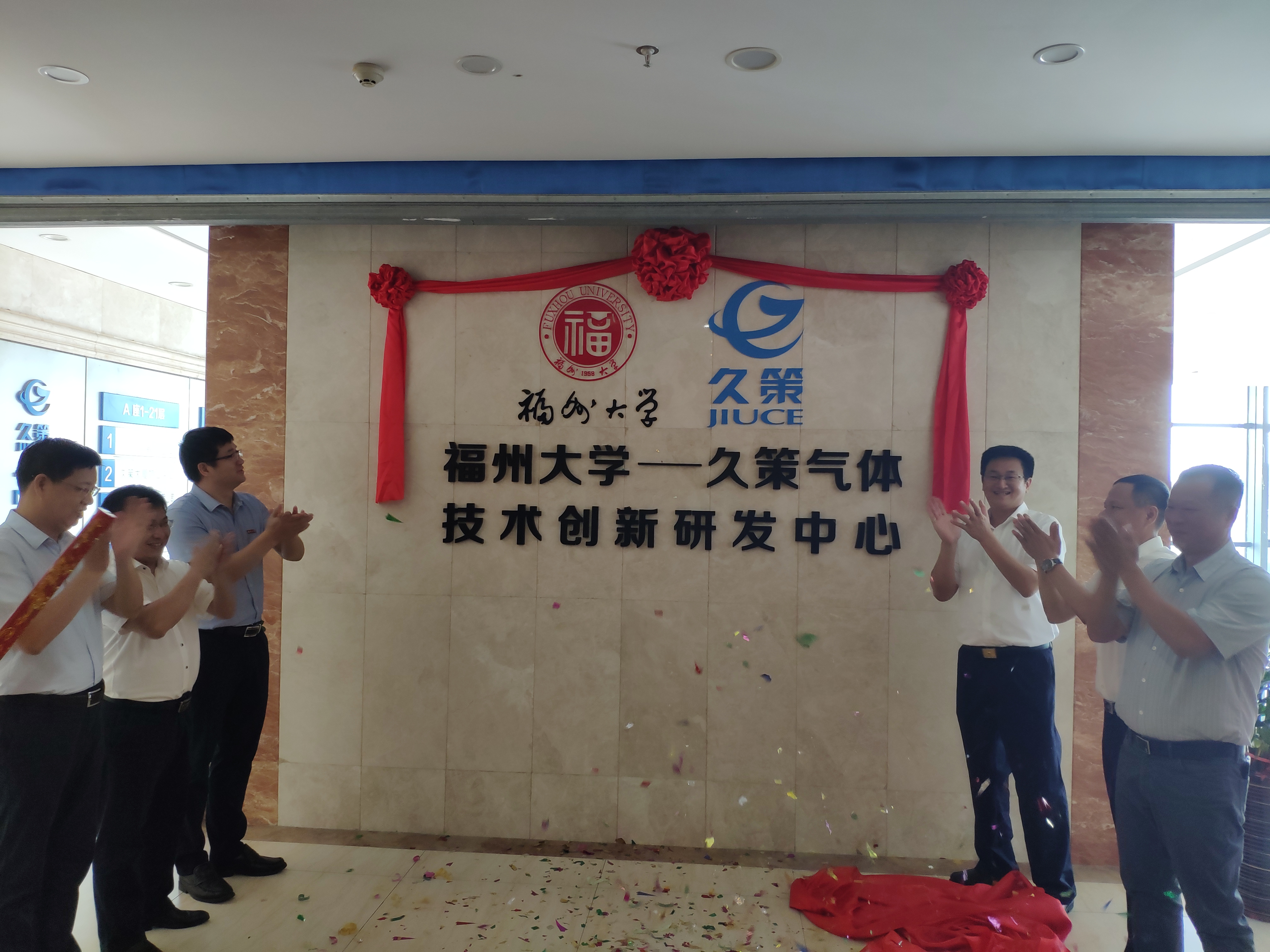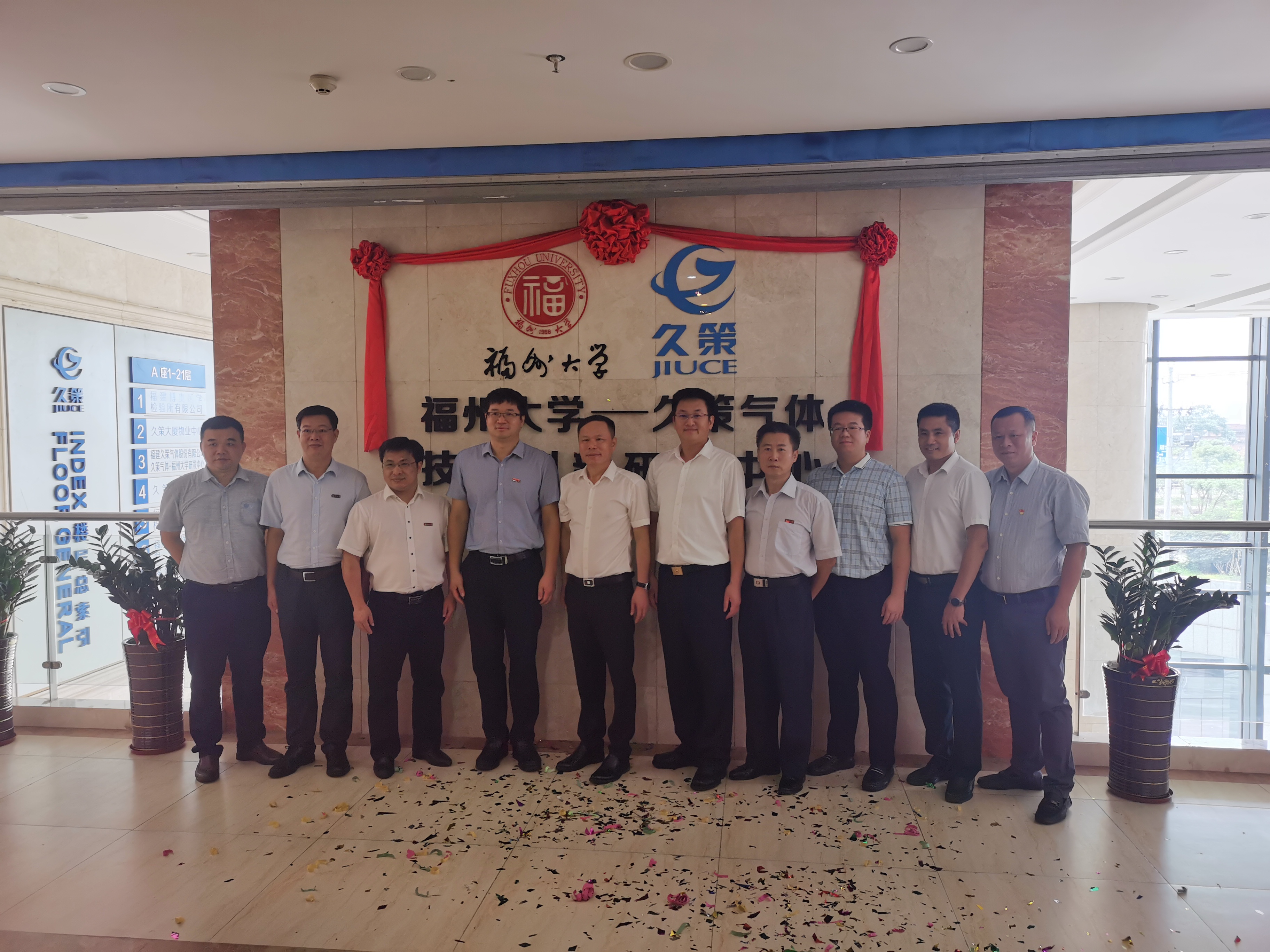 —久策气体科技创新研发中心”揭牌仪式在福州高新区久策大厦举行。福州高新区管委会党工委书记黄建雄,福建久策集团有限公司董事长何标, 苏畅