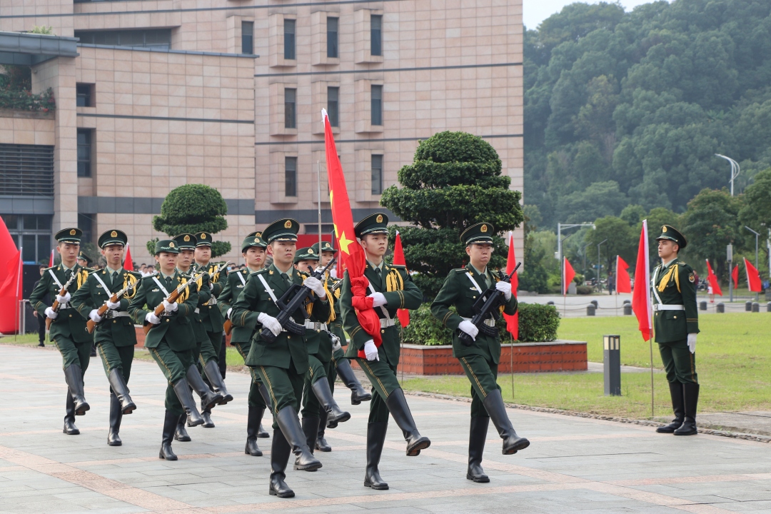 在泉港校区与旗山校区同步举行升旗仪式。全体学工组老师及2020级新生参加了此次升旗仪式。