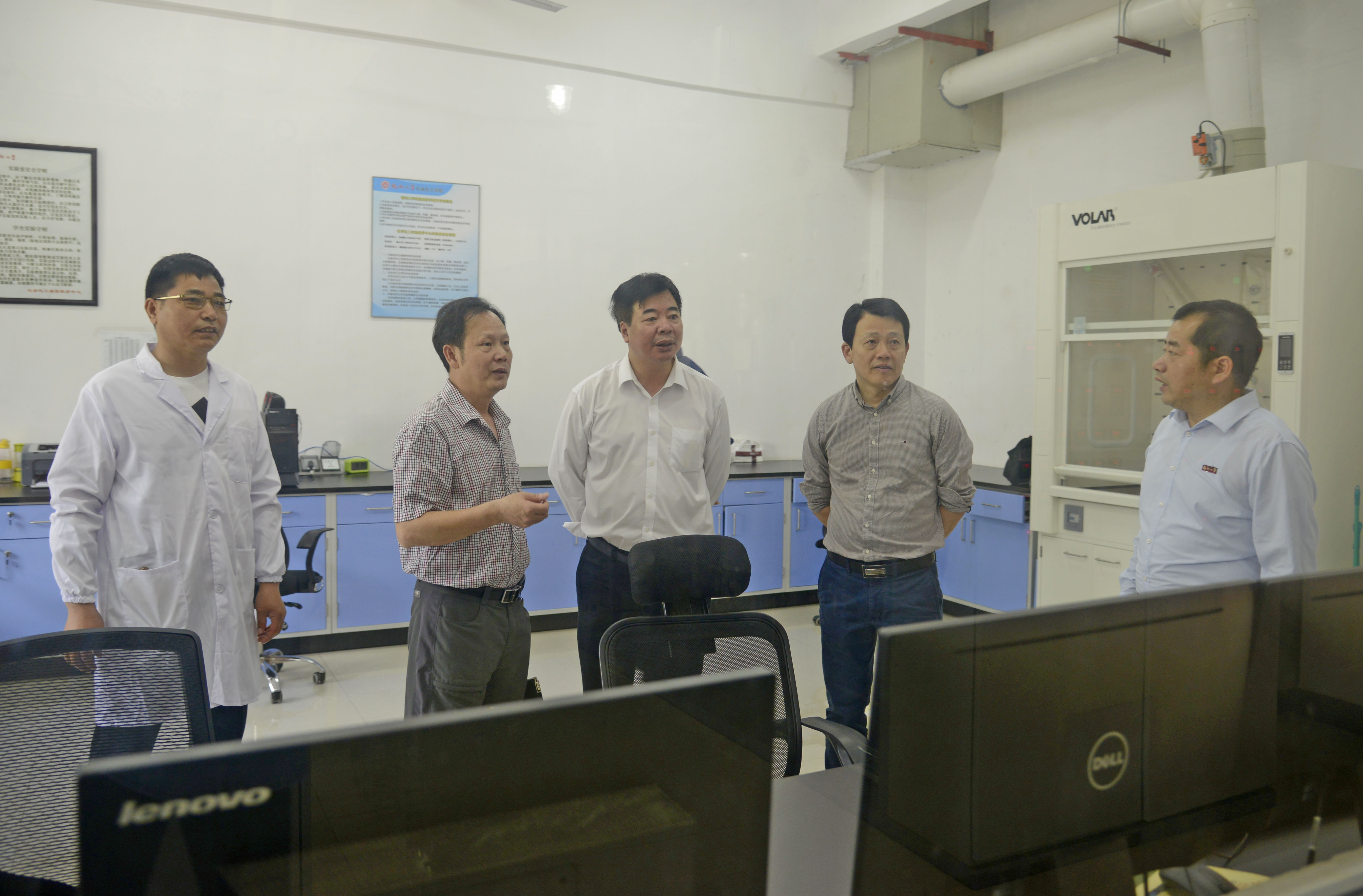 2019年4月24日上午,泉州市委常委、统战部长林万明一行莅临泉港校区石化学院调研。石化学院副院长陈全成、魏伟胜教授、泉港区区委统战部长陈龙津陪同调研。石化学院副院长陈全成向林部长汇报学院党外知识分子工作情况并带领林部长一行参观了海西石油化工催化材料公共服务平台、化学工程实验室和佑达电子精细化学新材料工程技术中心,介绍了党外知识分子的工作环境。林部长对 苏畅 入驻以来各方面发展建设所取得的成绩给予了充分的肯定,并鼓励学校培养更多的石化人才,为石化行业发展作出贡献。