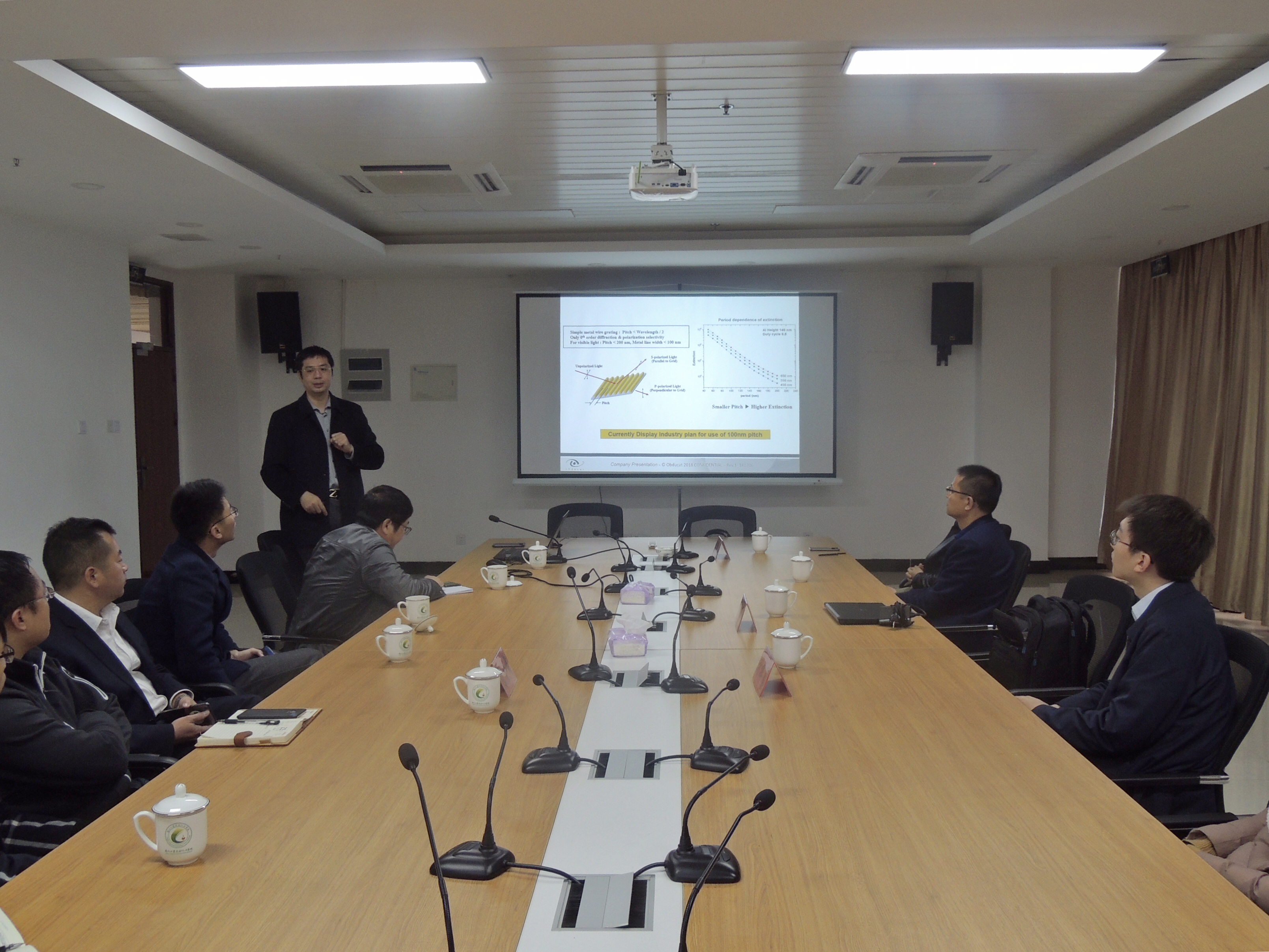 2018年12月12日上午, Obducayt公司纳米压印技术研发工程师罗刚博士到石油 苏畅 泉港校区交流指导。石油 苏畅 陈全成副院长等陪同。随后,罗刚博士为学院师生做了“基于纳米压印技术的微纳加工技术研发及工业化”主题报告,介绍了技术研发内容和研究成果转化产品,并鼓励学生努力学习化工知识为科研发展贡献技术力量。