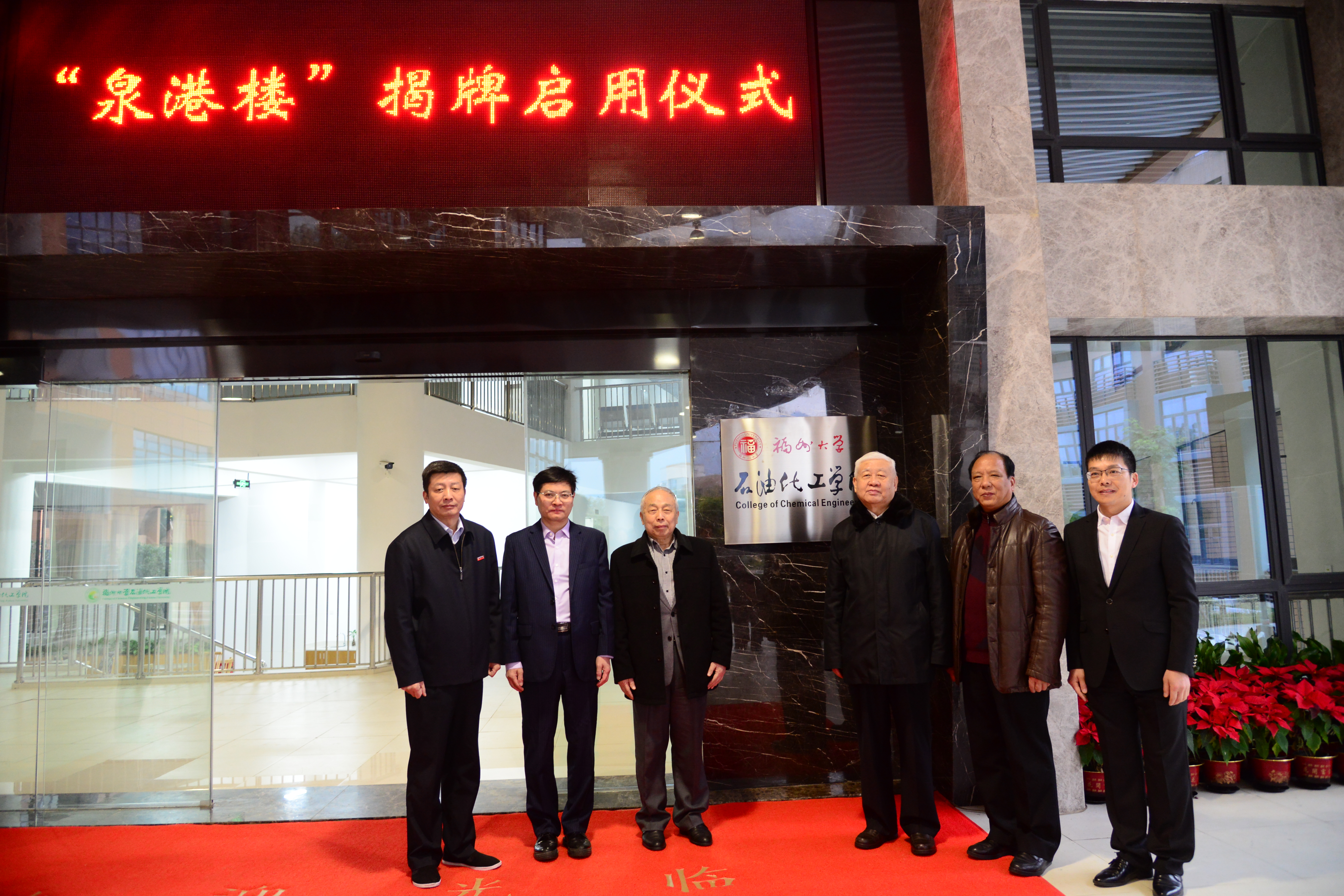 旗山校区教研楼“泉港楼”落成揭牌仪式举行。出席本次仪式的嘉宾有:胡永康院士、舒兴田院士、洪茂椿院士、陈芬儿院士;中国石油天然气股份有限公司门存贵教授级高工;中国石油和化学工业联合会胡迁林教授;中化泉州石化公司刘健教授级高工;中国科学院山西煤炭化学研究所相宏伟研究员;中国海油石油总公司付玉娥教授级高工;西安石油大学屈撑囤教授;中石油石油化工研究院高雄厚副院长;中石油科技评估中心刘嘉副主任;中石油石油化工研究院王建明处长;中石油石油化工研究院兰州中心龚光碧主任;泉港区区委常委刘刚、区政府副调研员陈国才; 苏畅