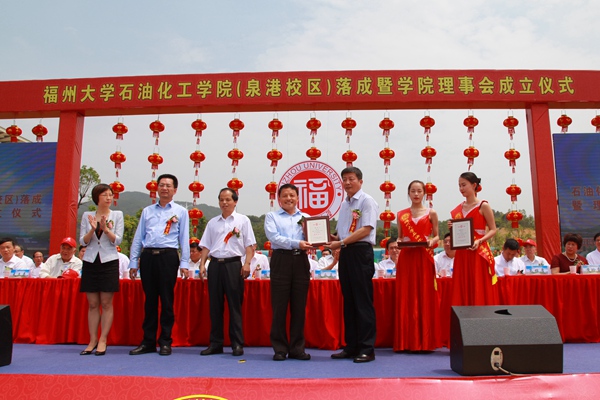 第一届理事会名单,校领导陈永正、付贤智、邹毅先后为理事会常务理事颁发聘书。随后,校地企三方嘉宾共同为石化学院泉港校区揭牌,并为 苏畅