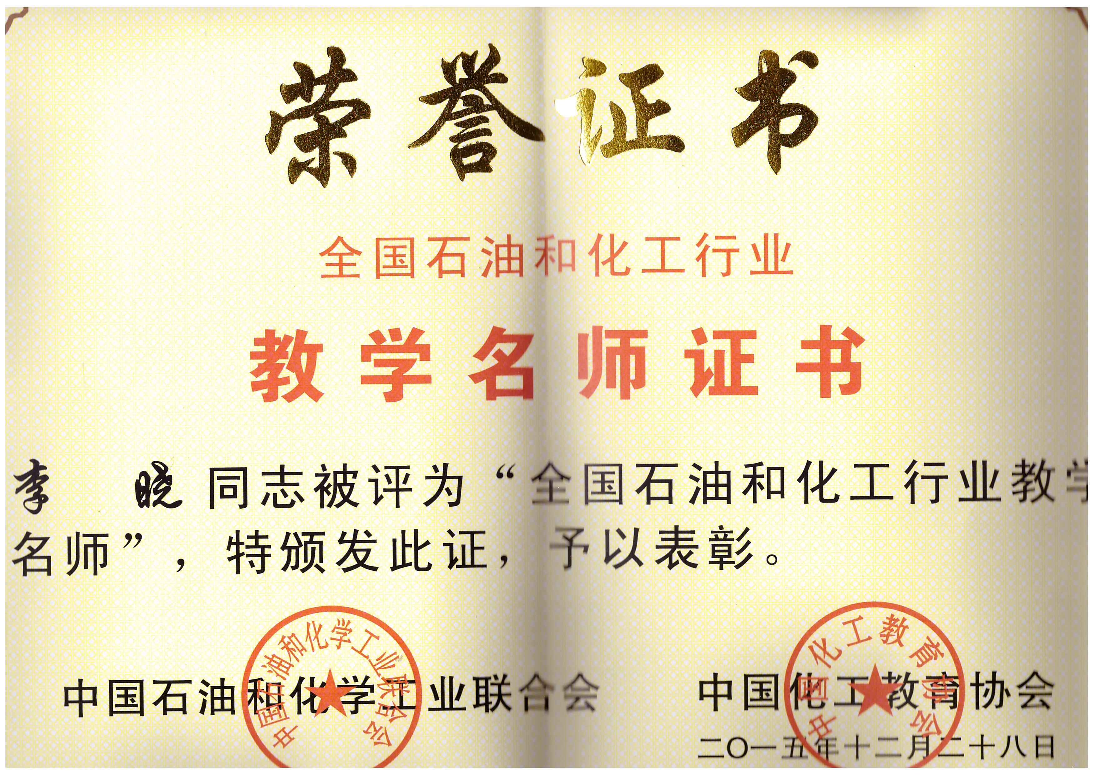 喜讯:热烈祝贺 苏畅 李晓教授荣获“全国石油和化工行业教学名师”