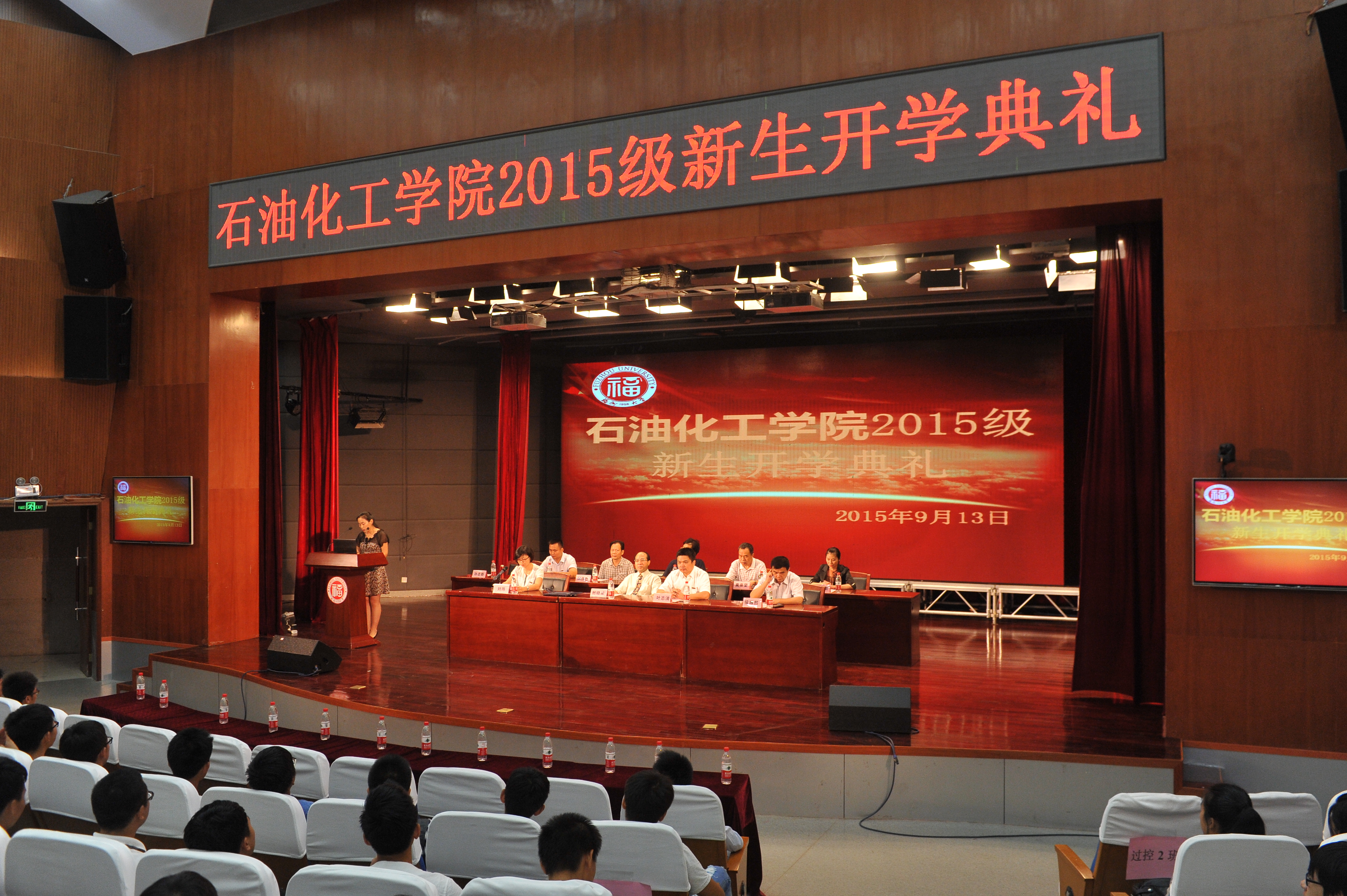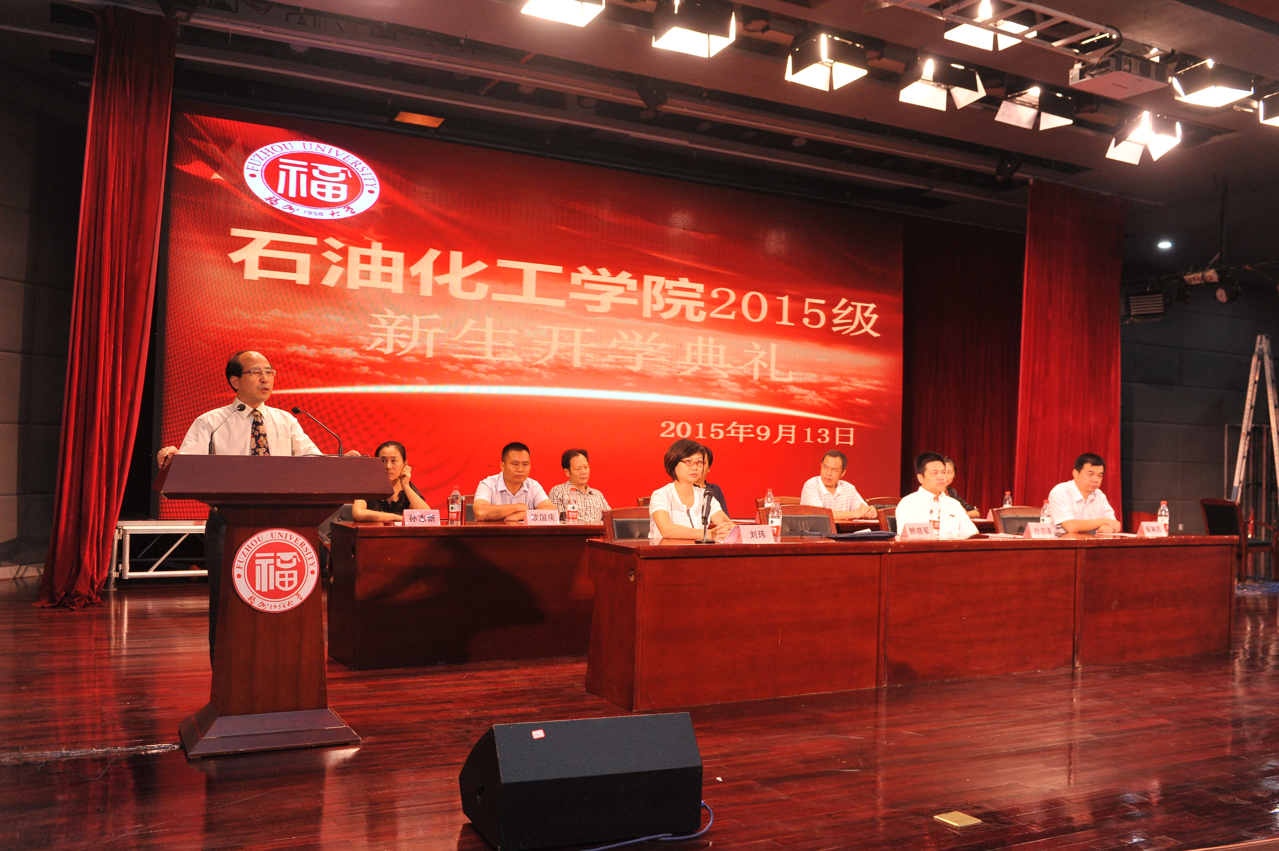 2015级新生开学典礼在图书馆博学厅隆重举行。出席开学典礼的学院领导、老师有:院长鲍晓军教授、院党委书记叶志清副教授、副院长侯琳熙教授及学院各系所负责人、实验中心主任、专任教师代表和全体辅导员。本次开学典礼由石油 苏畅