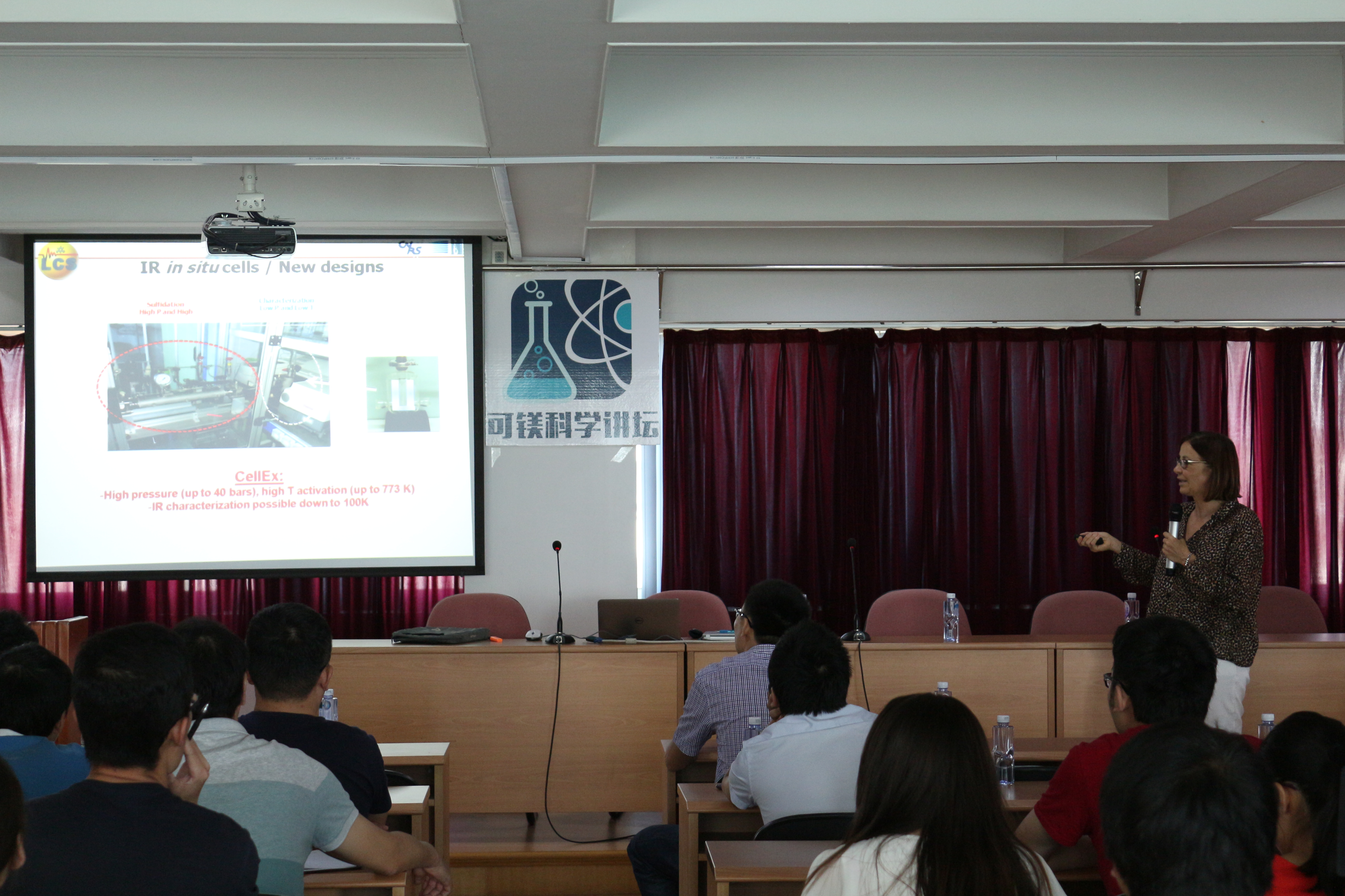 Maugé博士在多相催化领域已经工作了近25年,她不仅致力于多相催化的基础研究还关注其工业应用。作为世界领先的红外光谱专家,Maugé博士分享了法国国家科学研究院独创的原位红外装置并以加氢脱硫反应为例阐述了其在催化领域的应用。