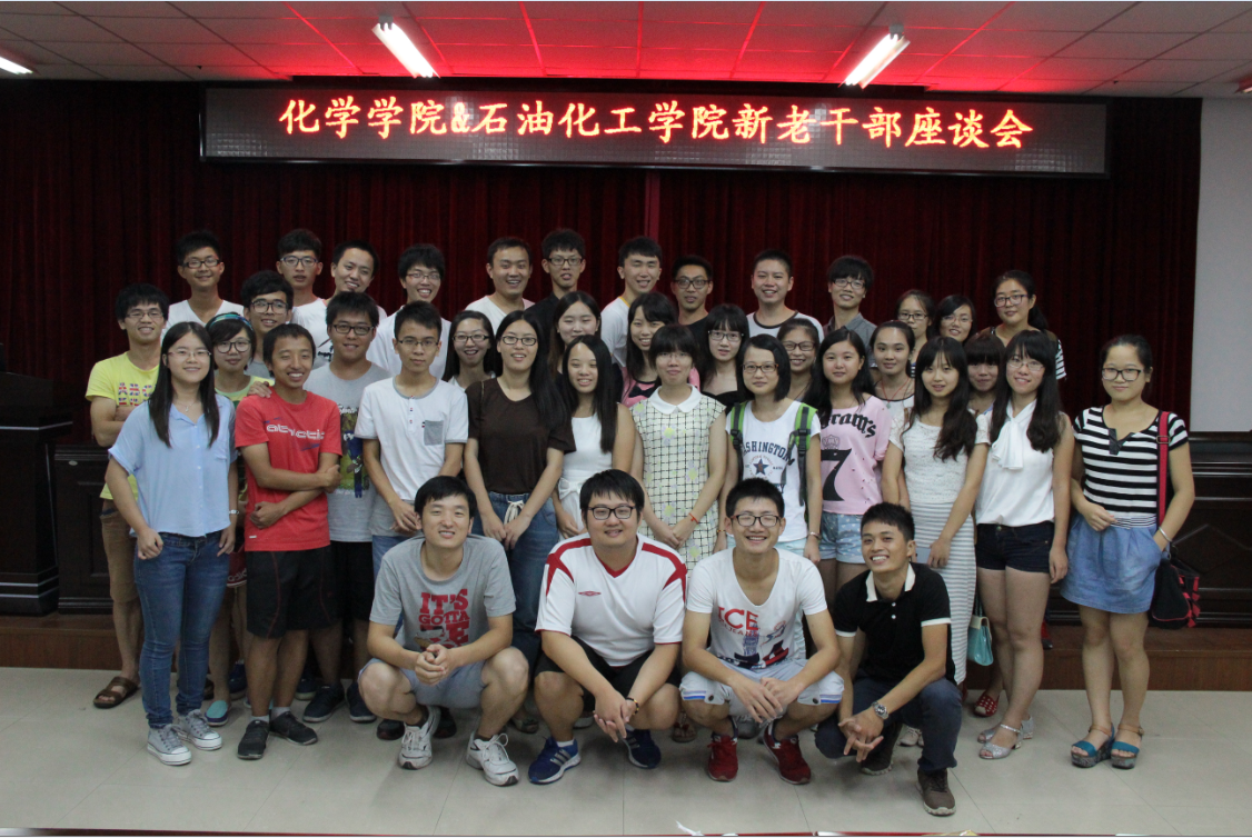 与化学学院联合举办新老学生干部座谈会,以增进两个学院之间的交流。