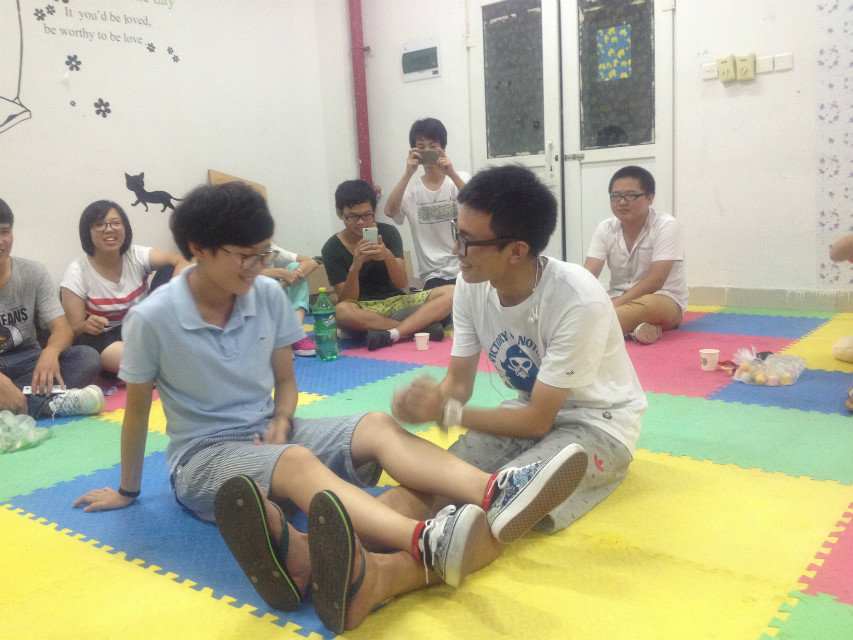 简单的自我介绍后,由助理池国源主持游戏活动。首先是传统经典的5毛1块游戏,男生代表一块,女生代表五毛, 然后是千千结,没有想象中激烈,分成两组,多次游戏大家居然都同时解开!接着是由林晓薇学姐提议数七游戏,结果如人所愿多人中枪,各种惩罚爆笑全场,气氛十分欢快……