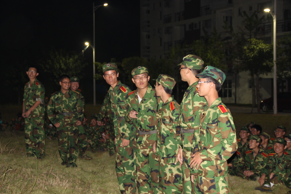 2014年10月17日晚,为丰富军训生活,展现学生风采,在生活区的草地上,新生与教官的联合才艺晚会伴着路边的灯光正式举行。各班班导临场扮演主持。