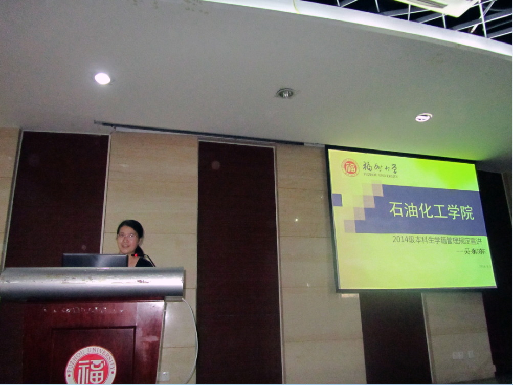 教学办组织的《学生手册》宣讲活动和学院组织的适应性教育系列活动之朋辈分享《新生引导手册》活动在大学生素质拓展中心二楼报告厅举行。院教学办吴东东老师、院团委书记兼14级新生辅导员蒋林娟老师出席本次会议。