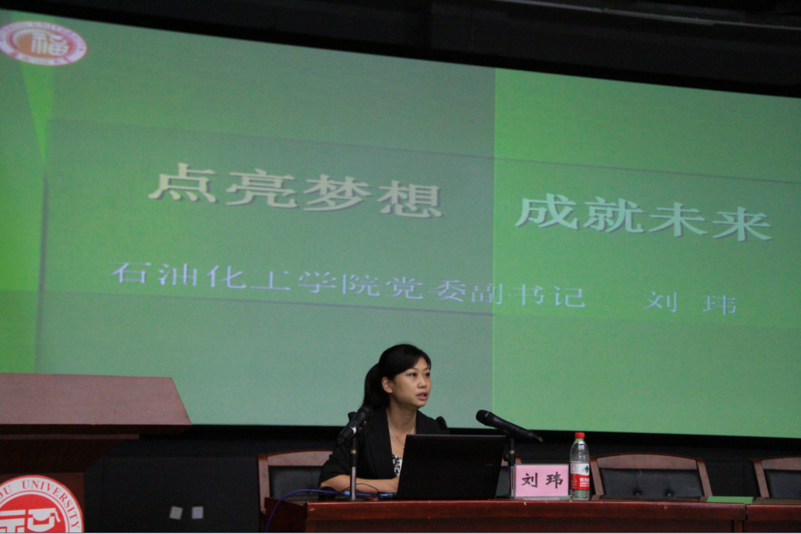 刘玮老师首先对来自五湖四海的石化新生表示热烈的欢迎。随后,她简单地介绍了学院的成长历程概况和学院“研究型、高水平、国际化”的发展目标,并引用习近平总书记在“五四”讲话中的原话,教诲新生“扣好人生第一颗扣子”。刘玮老师还以 “勤学、修德、明辨、笃实”激励新生们规划好大学生涯学习计划,抵制网络垃圾的诱惑,安心学习系统知识,了解国家政策方针和国家大事,做一名合格的社会人。