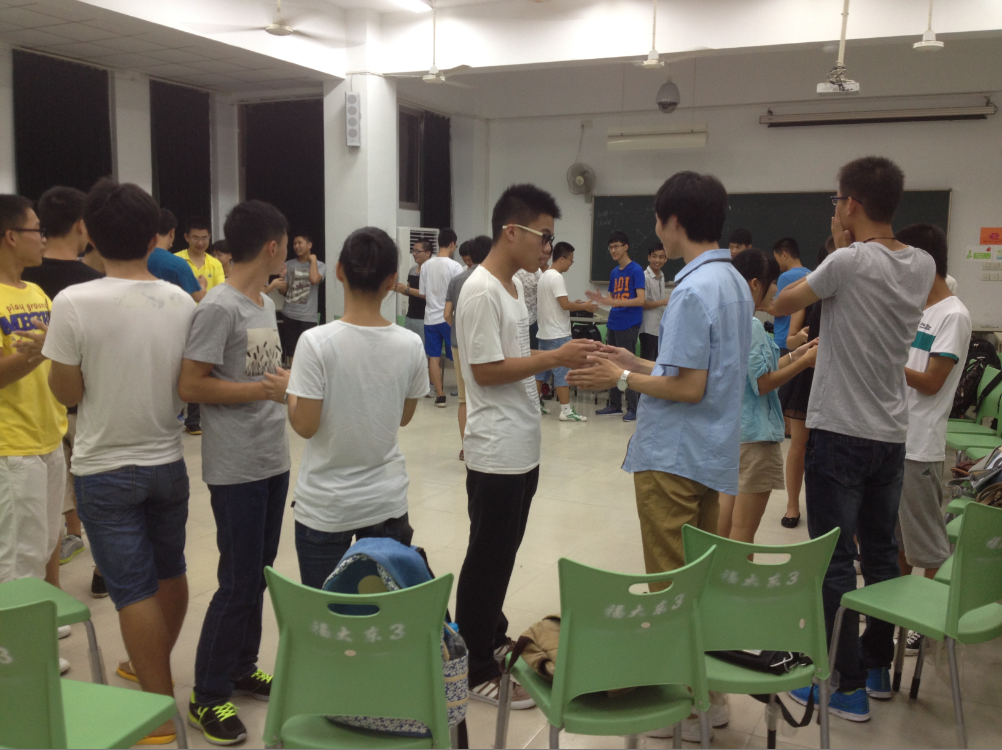 2014级新生在新生班导的带领下开展了一系列别开生面的团训活动。团训活动旨在消除大一新生间的陌生感,克服交流障碍,促进同学间的了解。