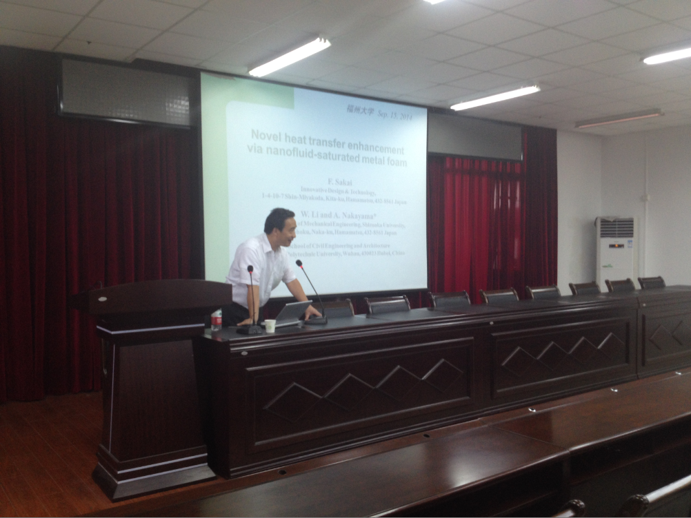 嘉锡楼413报告厅,一场关于“泡沫金属与传热”的研究生学术讲座在学生们热烈的掌声中拉开了序幕,来自日本的国际渗流力学和传热领域的知名专家Nakayama教授以亲切的中文慰问在场听众,然后登上了讲台。