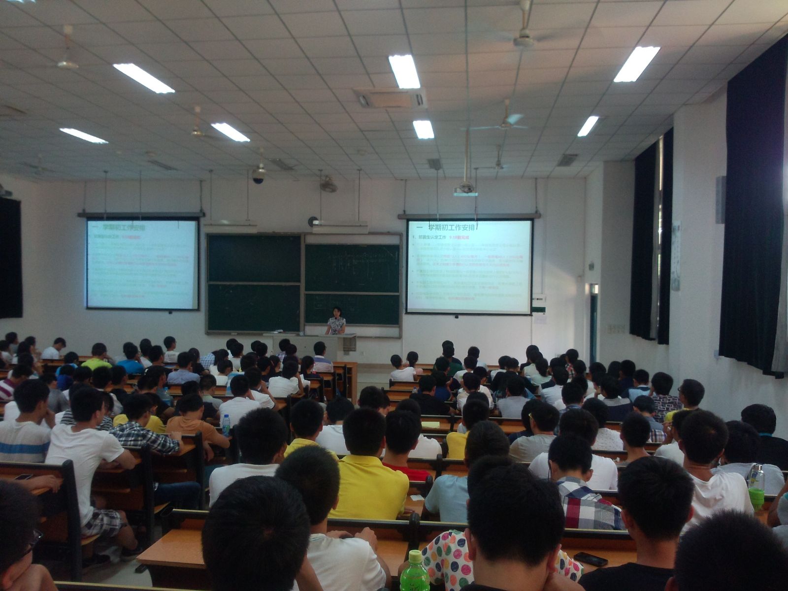 2014级军训动员大会于下午四点准时在文四-101教室如期召开,党委副书记刘玮老师、团委书记兼2014级本科新生辅导员蒋林娟老师、2014级本科新生助理辅导员林鸿平老师及2014级石油 苏畅