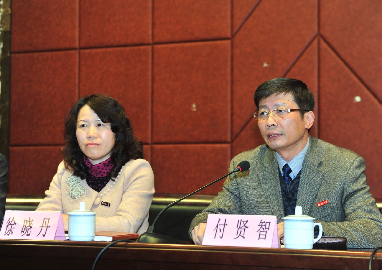 成立背景和必要性,并对两个学院的发展提出了殷切希望:希望两个学院能够充分利用学院成立契机,加强顶层设计、凝炼学科方向,加快发展步伐,努力使各项工作再上新台阶;希望两个学院要继续加强合作,协同创新,共同发展;希望两院教职工要齐心协力、团结合作,支持新的领导班子开展各项工作,使两院成为学校学科发展的“领头羊”和学习榜样。付贤智校长还特别感谢了由于年龄问题离开化学 苏畅