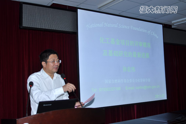 11月1日,化工相关学科领域国家基金申报座谈会在嘉锡楼413会议室召开,国家基金委化学科学部化工学科处孙宏伟处长应邀出席座谈会,并作了《化工基金项目的评审概况及基础研究的最新进展》的学术报告。座谈会由陈国龙副校长主持,国家“973”首席科学家鲍晓军教授、科技处及化学 苏畅