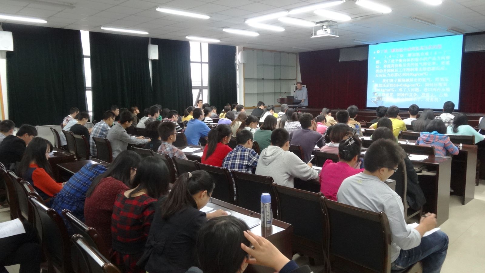 企业是社会经济的主体,企业需要技术创新,而技术创新也离不开企业的生产实践,只有不断推进产学研的有效结合,才能更好更快地促进技术的创新与企业的发展。蔡永亮工程师也借此勉励同学们,要刻苦钻研,加强实践,在化学化工这条道路上毅然地走下去,做到学以致用、用以促学,早日为社会作出贡献。