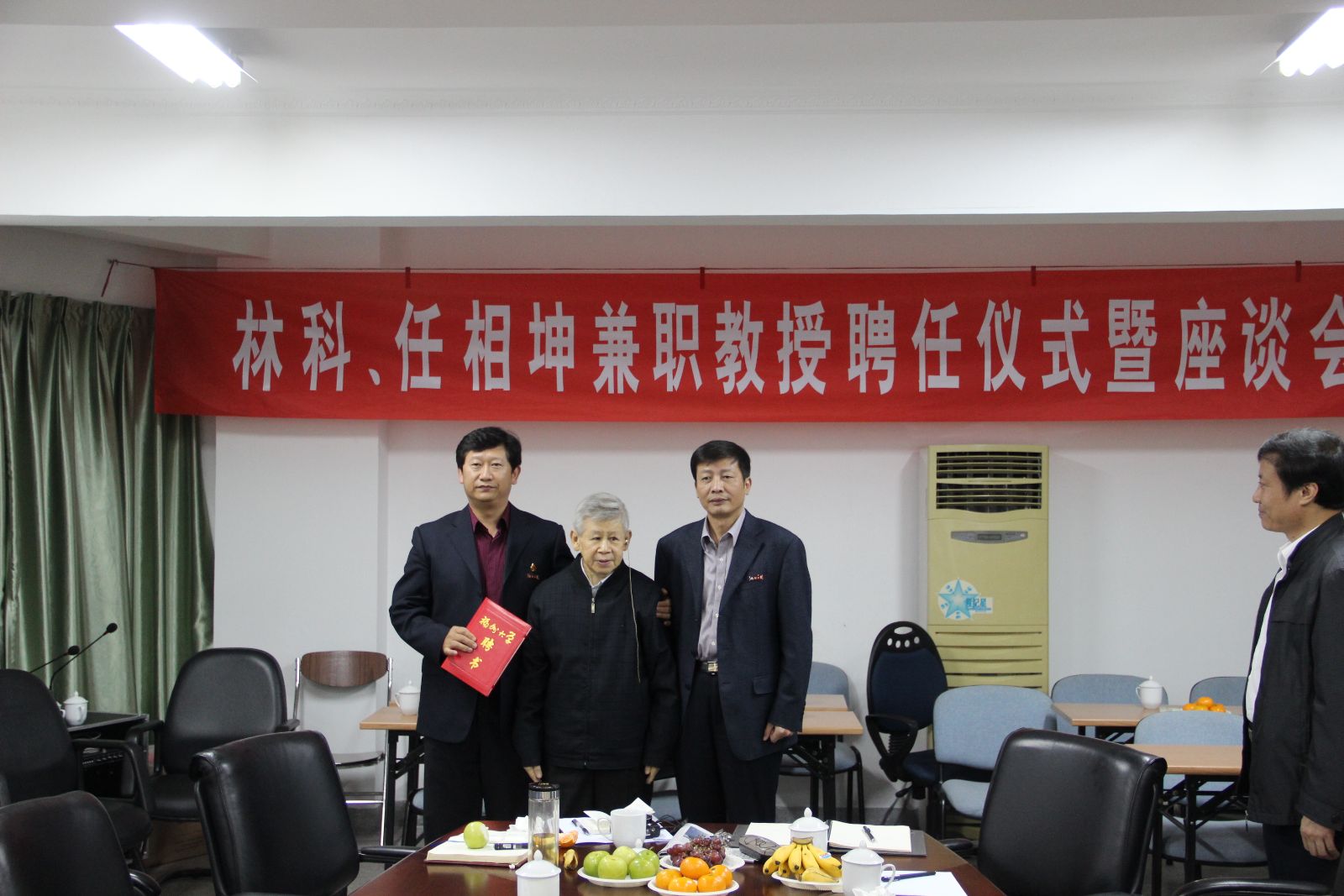 兼职教授聘书,并就双方合作事宜进行了深入的交谈。