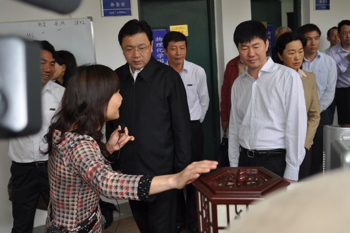物理化学国家重点学科测试中心和教育部食品安全分析与检测技术重点实验室,院党委倪朝霞书记向各位领导介绍了 苏畅