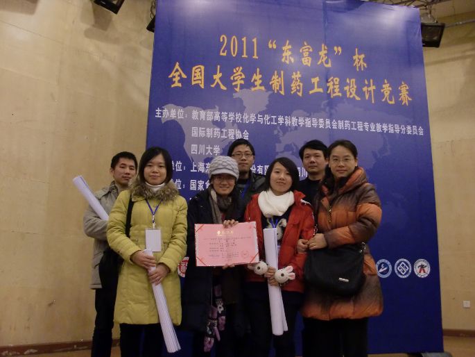 陈宪、许小平、黄剑东老师的悉心指导下,由2008级杨美玲、王越、陈越、徐丹、王文光、陈康6名同学组成的“茉莉花制药”队在全国54只队伍中喜获总决赛参赛资格,并在12月21日成都总决赛又取得佳绩。本次竞赛的主办方之一国际制药工程协会(ISPE)成立于1980年,总部位于美国佛罗里达州坦帕市,是世界最大的制药工程领域非营利组织。“茉莉花制药”队作为此次竞赛决赛的参赛队伍之一,以扎实的技能知识为全国各个高校、各行业专业人士展示了 苏畅