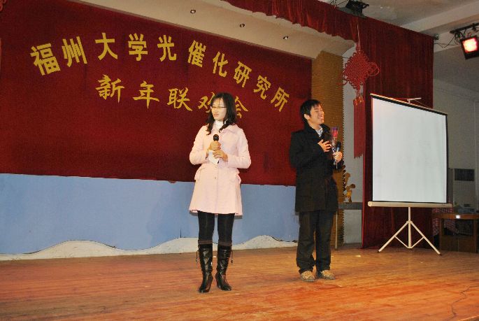 1月1日下午,怡山校区工会一楼会议厅内春意融融,笑语盈盈。光催化研究所2011年新年师生联欢会在这里举行,研究所全体师生员工欢聚一堂,共度新年。