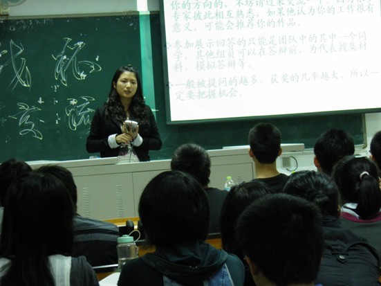 接着上任科技部部长汪阳忠学长(他曾获挑战杯全国银奖)为大家介绍了参赛队伍各阶段所要做的准备工作,还有比赛中要注意的事项和一些技巧。他的精彩讲说深深地吸引了台下的学弟学妹们,赢得次次雷鸣般的掌声。