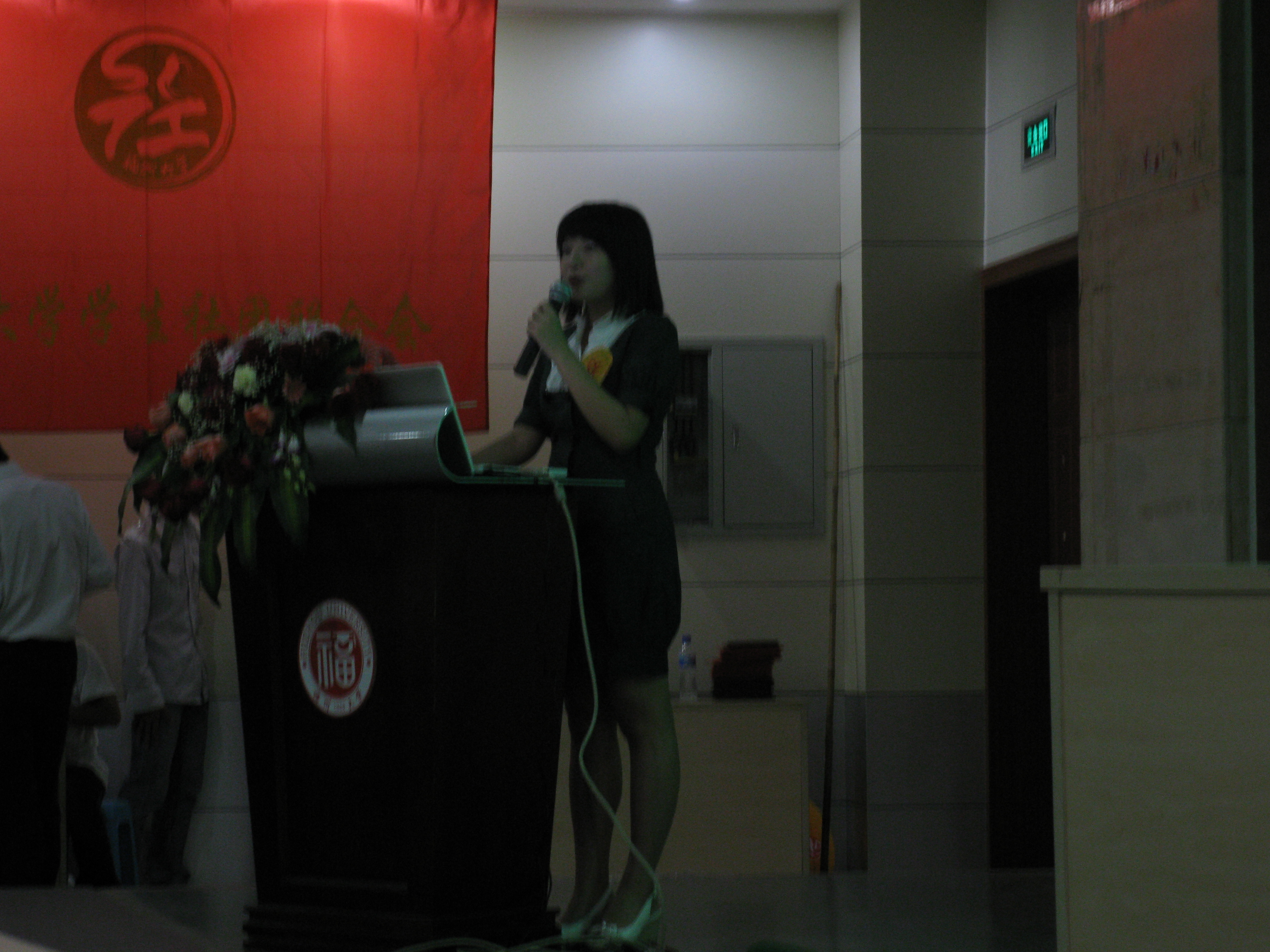 一晚上的评比,不觉乏味但到化爱时却依旧挡不住那份激动。主持人话音刚落就响起了“化爱十年,彰显特色,放飞梦想,铸就辉煌”的口号,那是来自化爱人,传达着一份支持,一份执着。PPT的展示,内容丰富又不失活力,主持人的讲话,话语激扬又不失平和,无一不透露着化爱人的自信,化爱团体昔日的辉煌,化爱对明天的展望。评比符合规则也不失化爱特色:评委席上老师走神了,原来是收到了化爱人精心制作的叶脉书鉴;观众的脖子伸长了,原来是上面演示着化学小实验——“清水九变”;热烈的掌声响起了,原来是台上“喷雾作画”的惊人效果让大家瞠目。掐好了的时间,5分钟的过程犹如化爱的十年历史那般的精彩,简洁而又详细的介绍,获得了热烈的掌声。