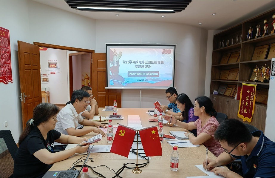 指导党史学习教育工作开展。同行的督导组成员有校教师工作部副部长阙璧君、校党委组织党务管理科科长赵鹏、校人事处综合科副科长陈育芳。学院党委书记施卫华、副书记岳志强、工会主席兼党委委员赵素英代表学院党委参加了巡查座谈。