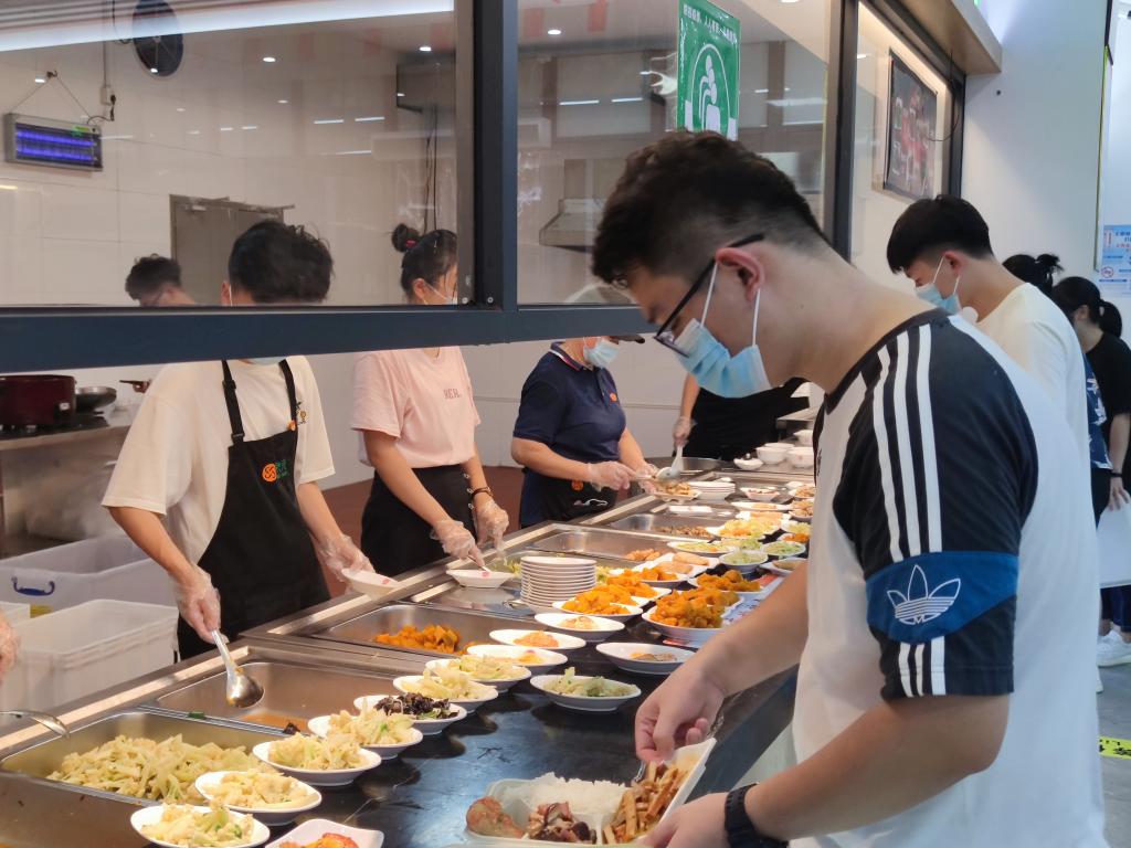 食堂就餐上,严格按照“一人一桌、同向而坐”的就餐要求,构建安全卫生健康的用餐环境。