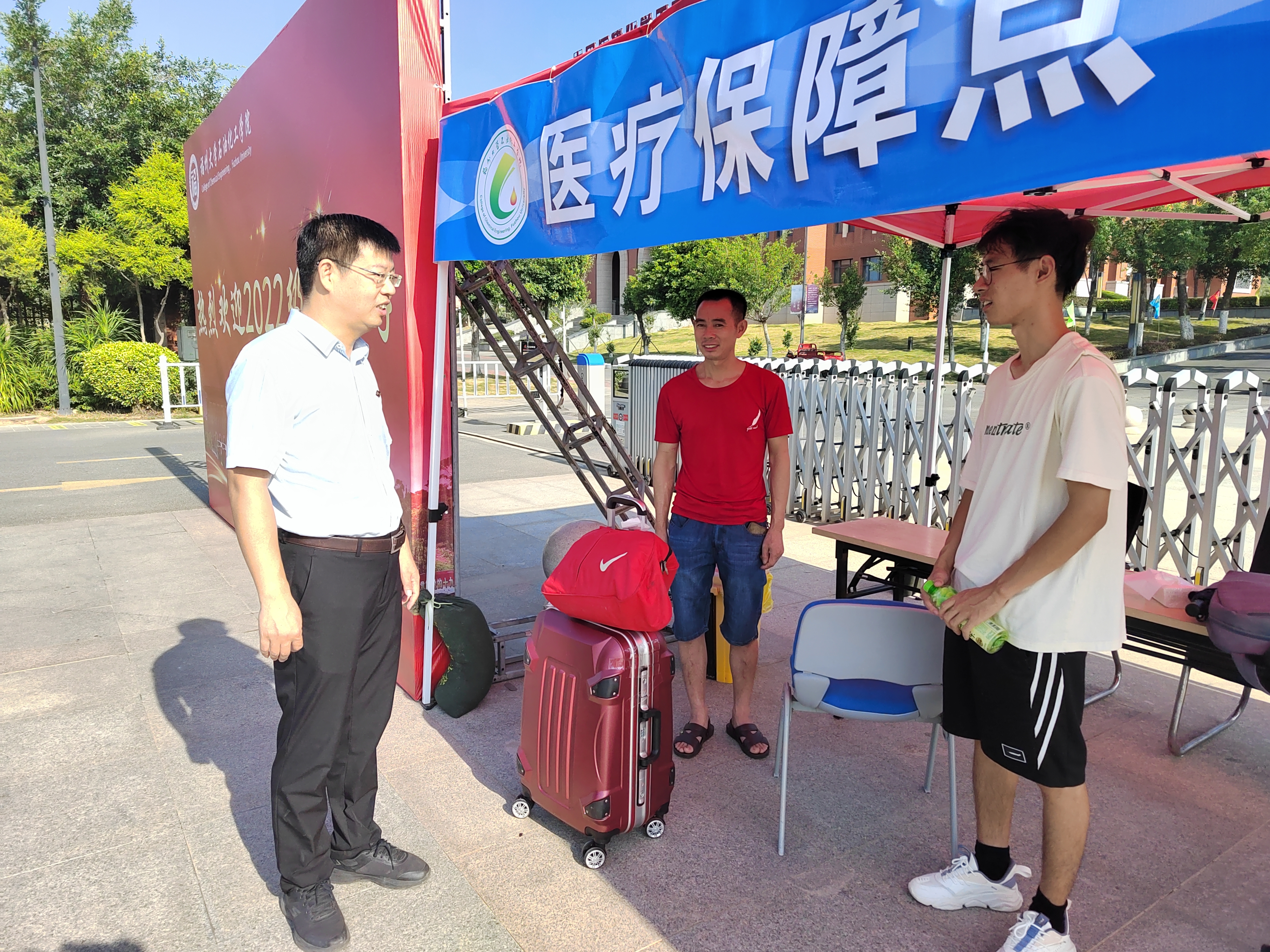 上午八点,学院施卫华书记、林航副书记、王文栋副院长、陈展飞副院长来到校区东门迎新服务点,组织迎新服务保障,并向报到新生及家长介绍校区情况。