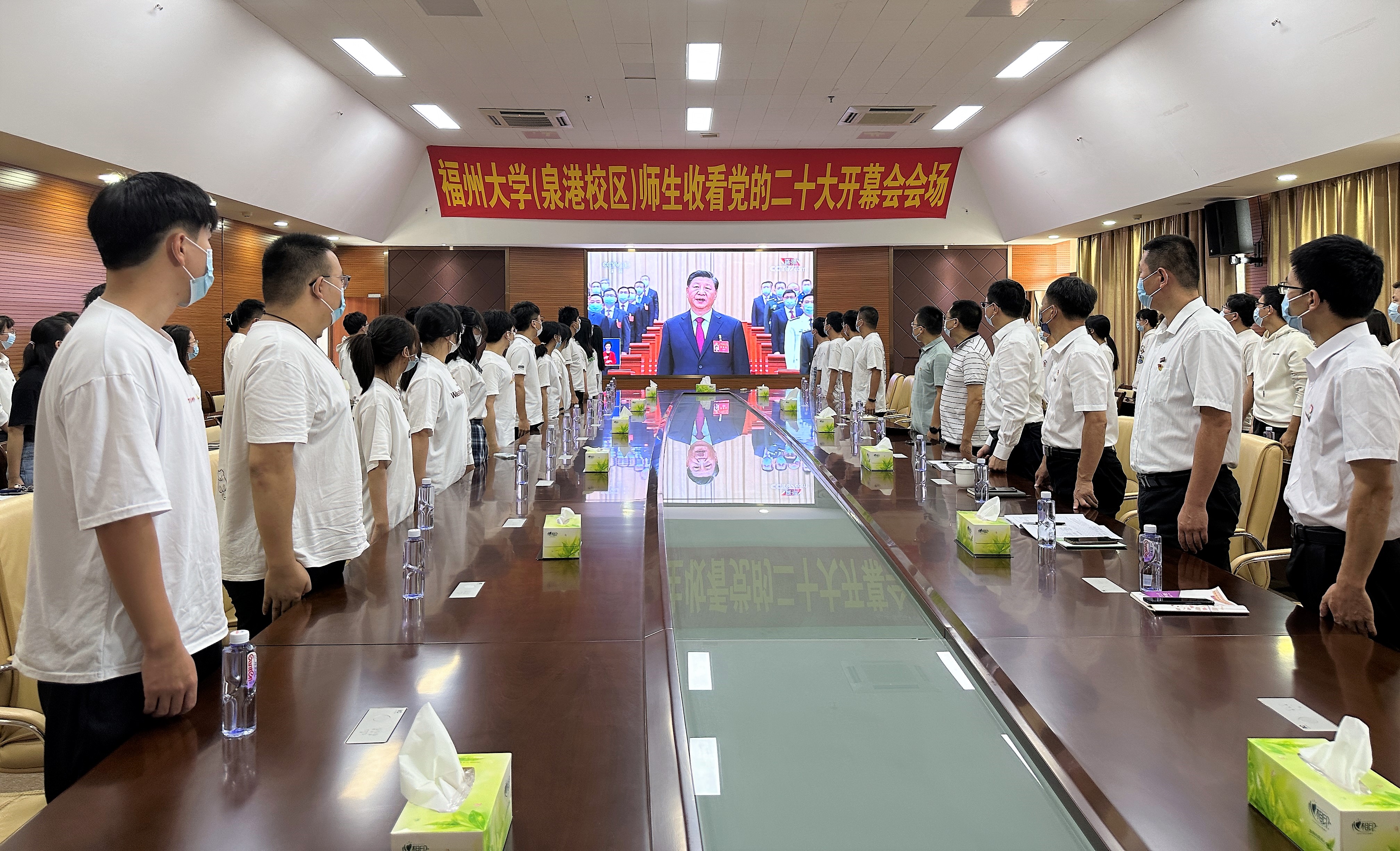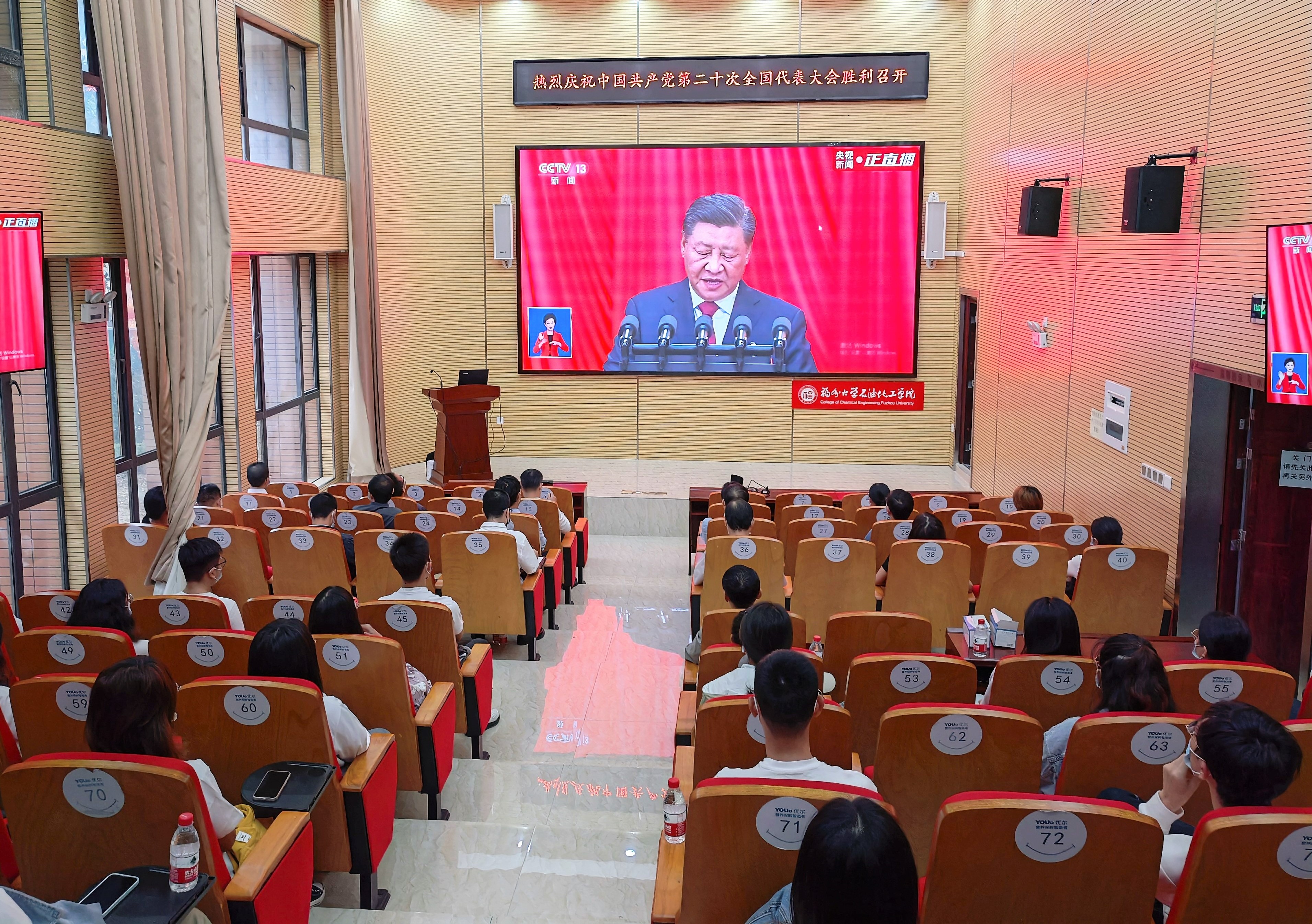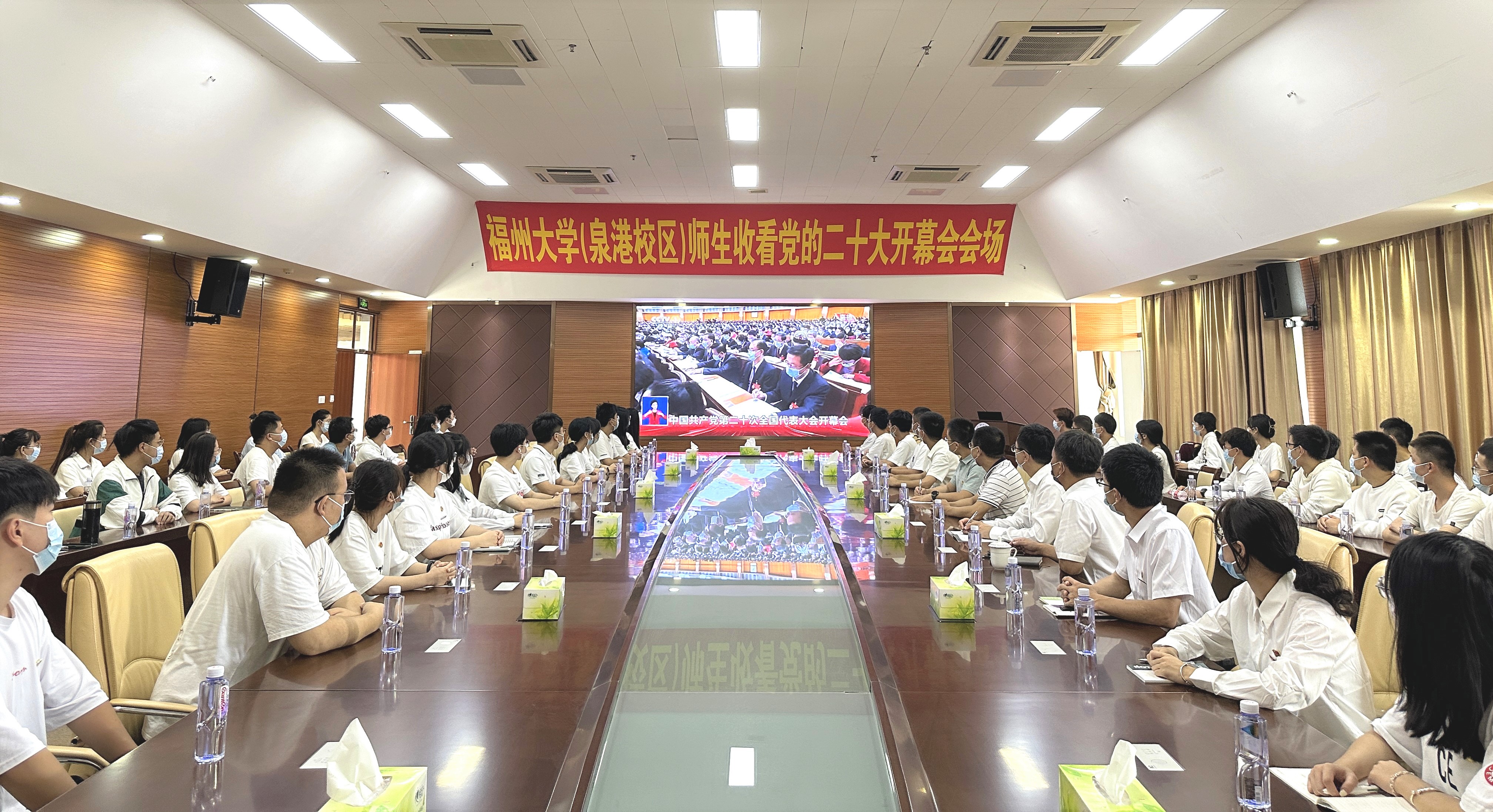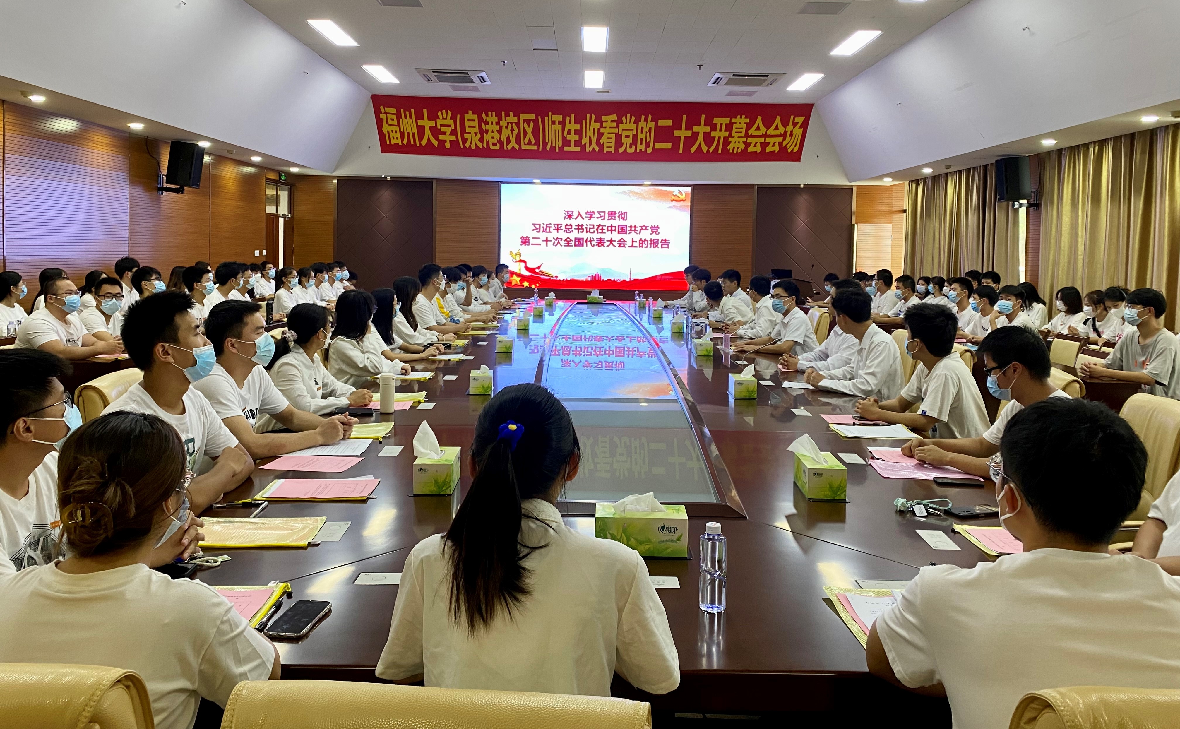 学院党委第一时间组织师生分别在旗山校区、泉港校区、怡山校区和铜盘校区四个校区收看了党的二十大开幕会现场直播。同时,组织师生一同学习研讨习近平总书记在开幕会上所做的报告,引领师生坚定不移听党话、矢志不渝跟党走。